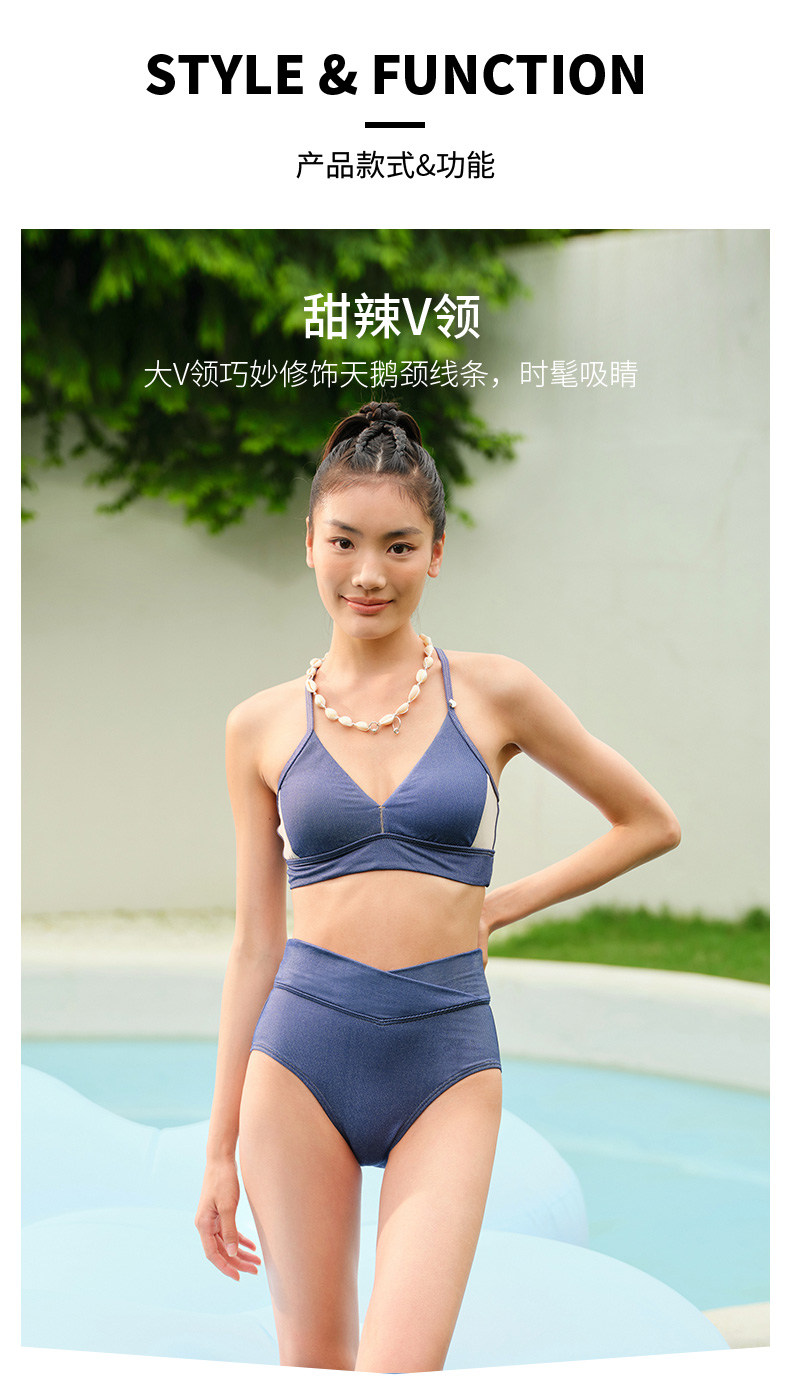 sisia2024新款泳衣女性感v领高腰显瘦泡温泉高级感分体绝美比基尼