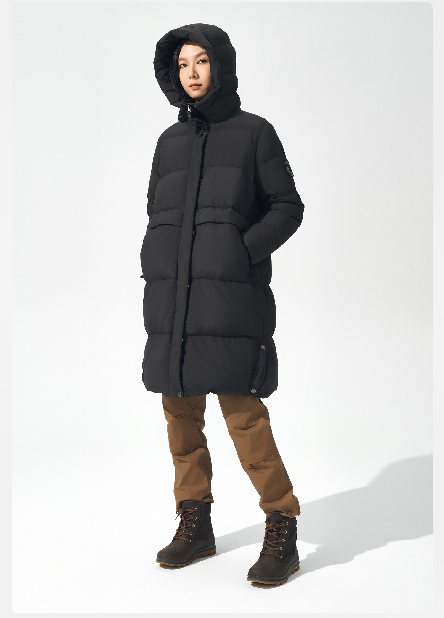 北极狐 白鹅绒长款羽绒服 冬季加厚保暖轻便连帽鹅绒服 09242202