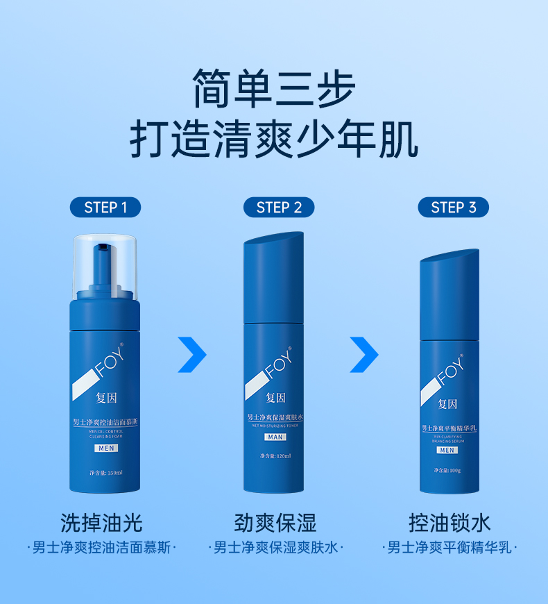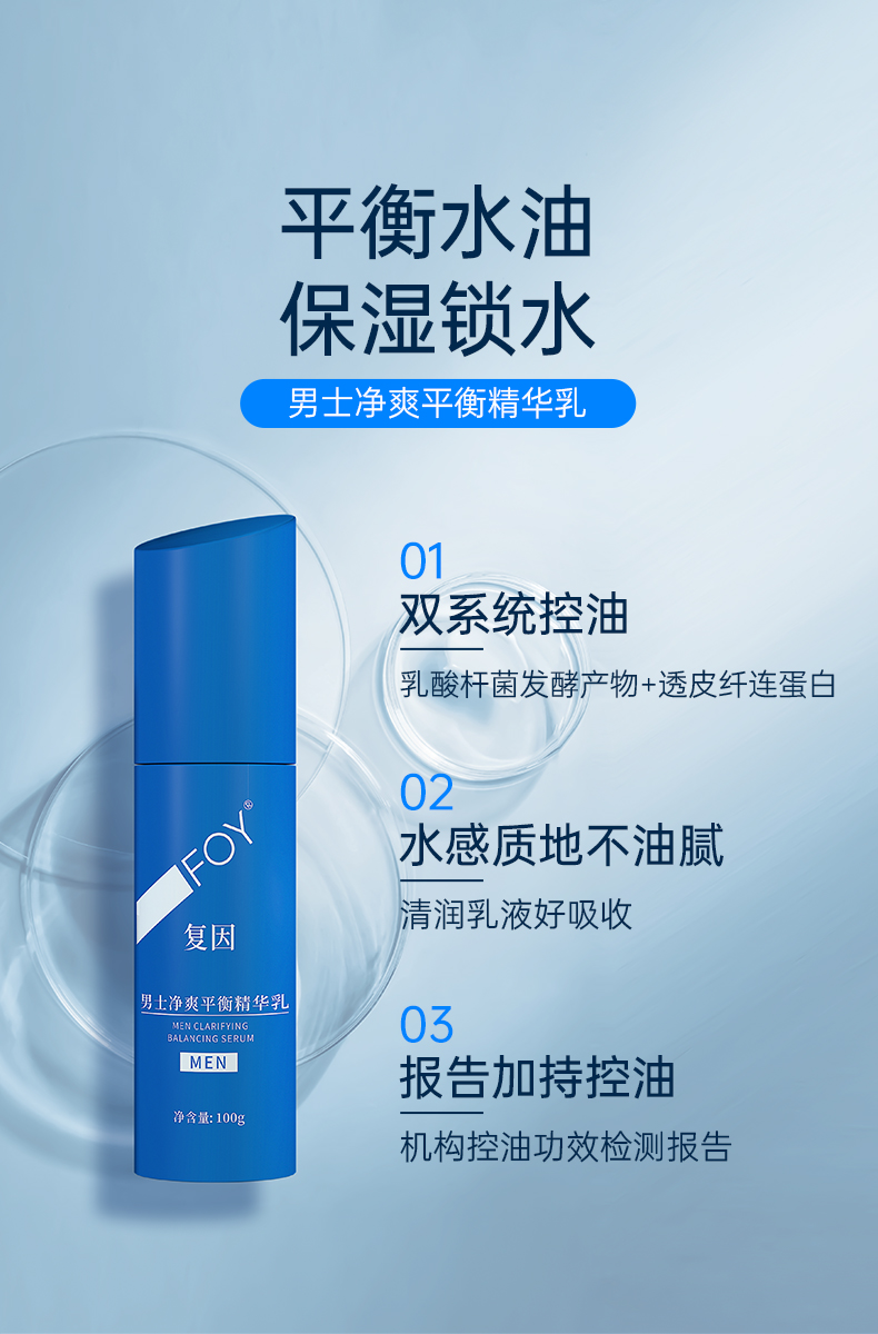 【2件9折,3件8折】复因FOY男士净爽平衡精华乳 100g 清爽保湿控油锁水**