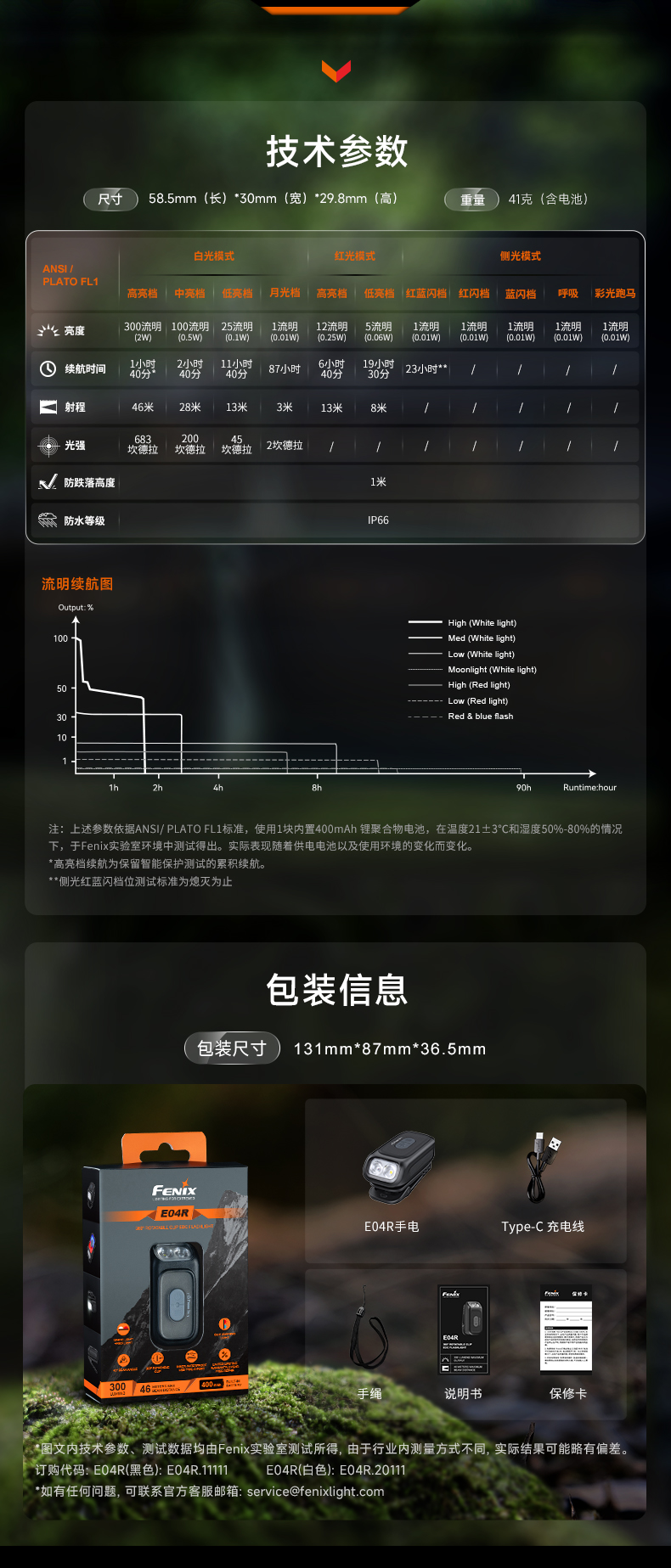 Fenix菲尼克斯E04R小型手电筒便携骑行警示安全夜跑可充电肩夹灯