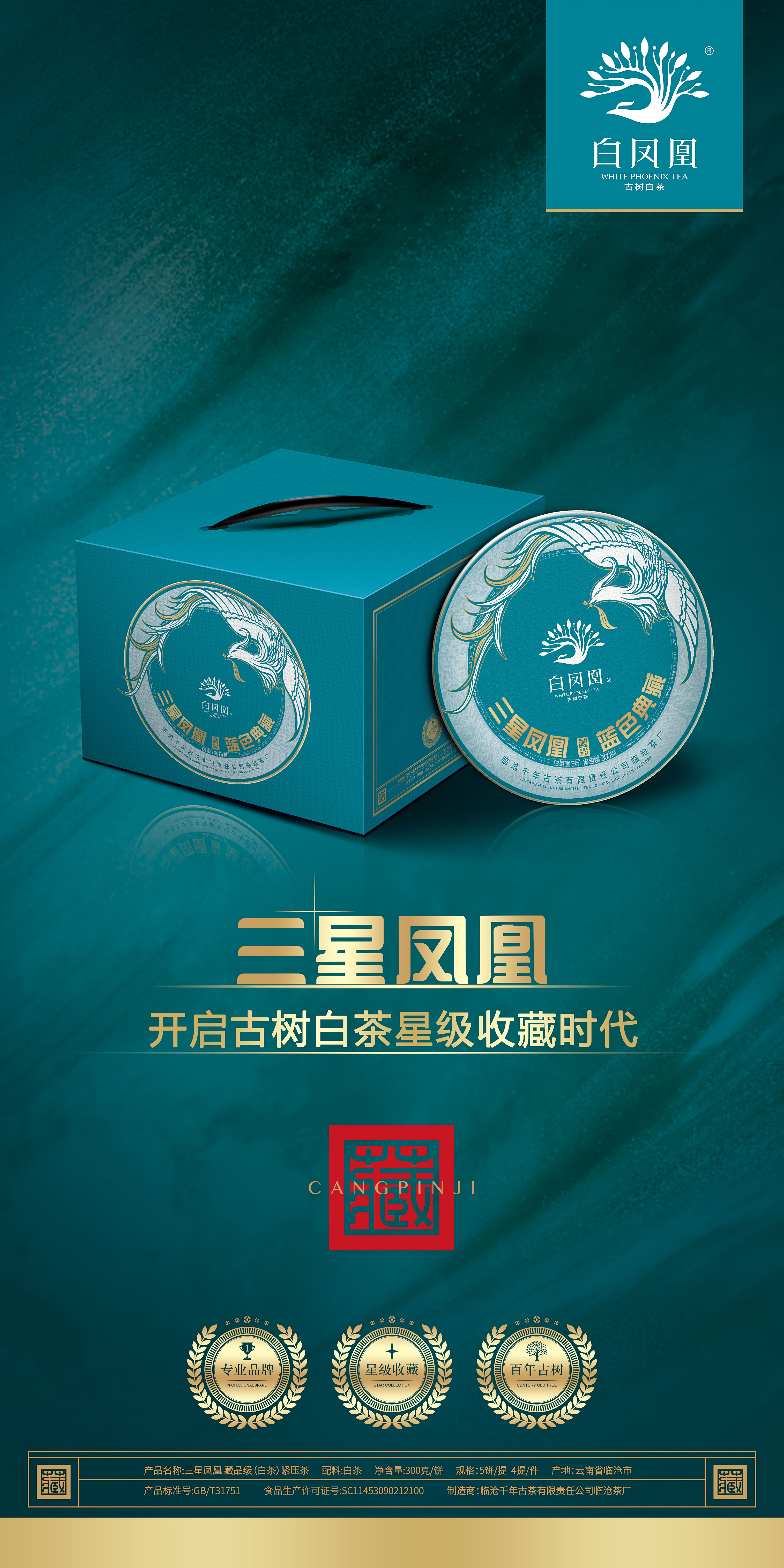 本款“三星凤凰”古树白茶,为白凤凰为爱茶人打造的藏品级高端古树白茶。为保证茶品的品饮价值及收藏价值,制茶团队深入茶区云南临沧地区,精心甄选百年古树原料,经传统白茶工艺精制而成,不炒不揉,自然萎凋,阳光晾晒,最大程度保留了古树茶的丰富内质与自然口感。冲泡后汤色金黄明亮,花香果香怡人,口感鲜爽,醇和清甜,回甘迅速,韵味悠长,经时间陈放口感更佳,是一款品饮、收藏价值极高的古树白茶。