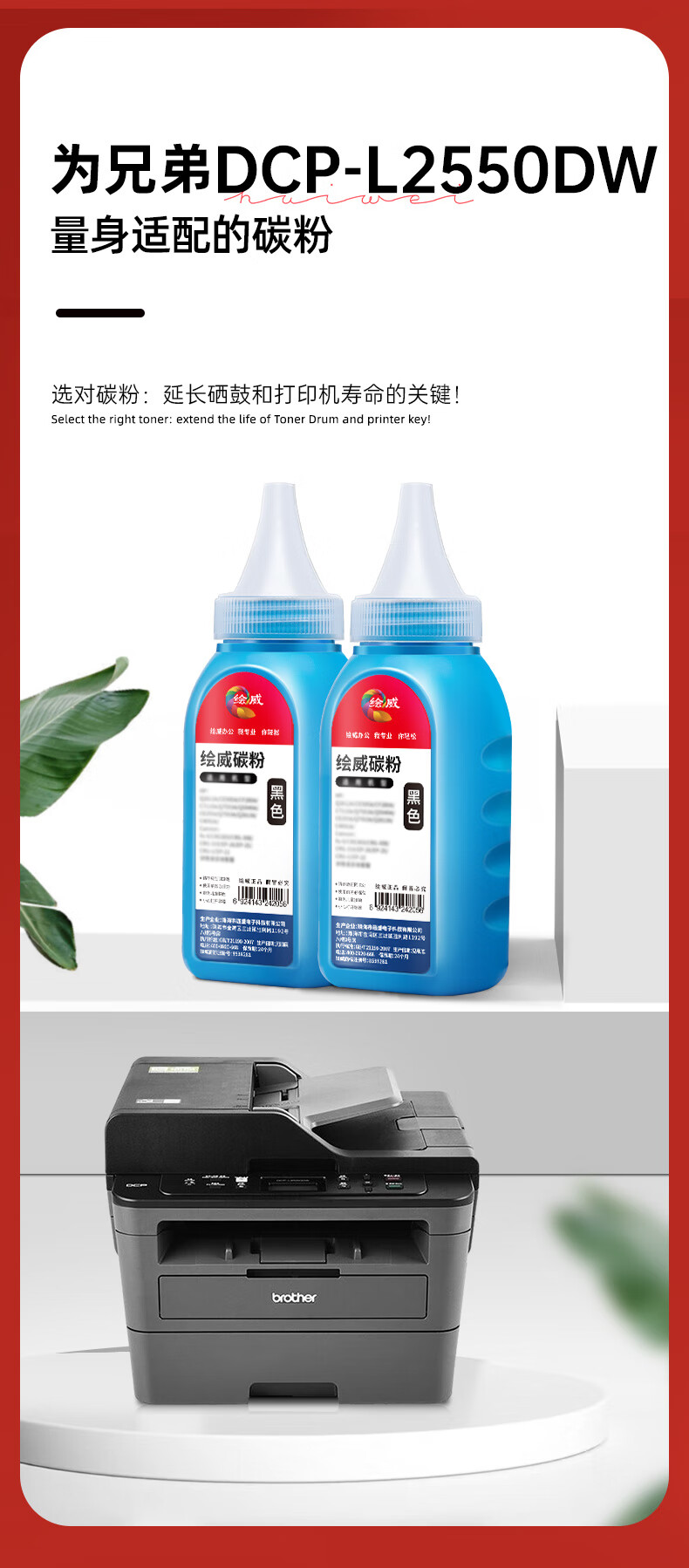 绘威 L2550DW粉盒适用兄弟 DCP-L2550DW 打印机专用硒鼓DCPL2550DW brother墨盒 l2550dw墨粉盒