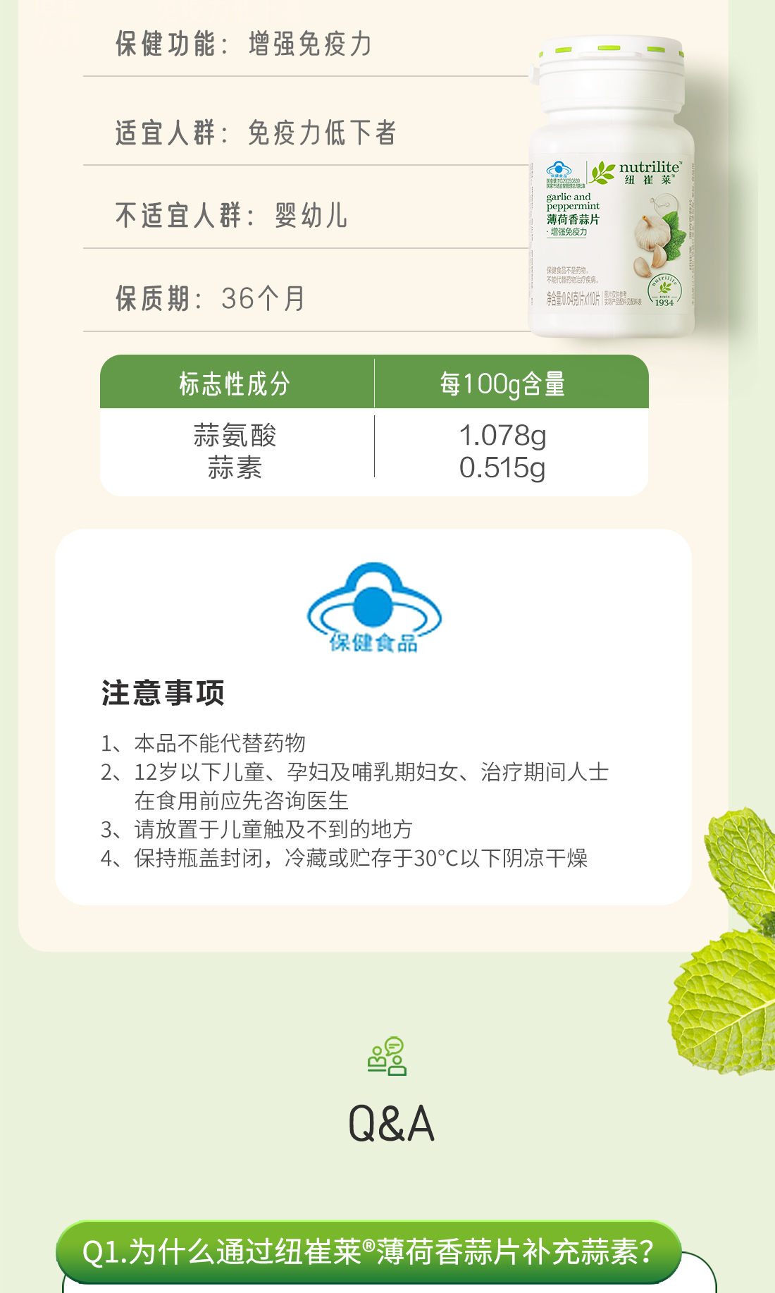 安利纽崔莱®薄荷香蒜片110片