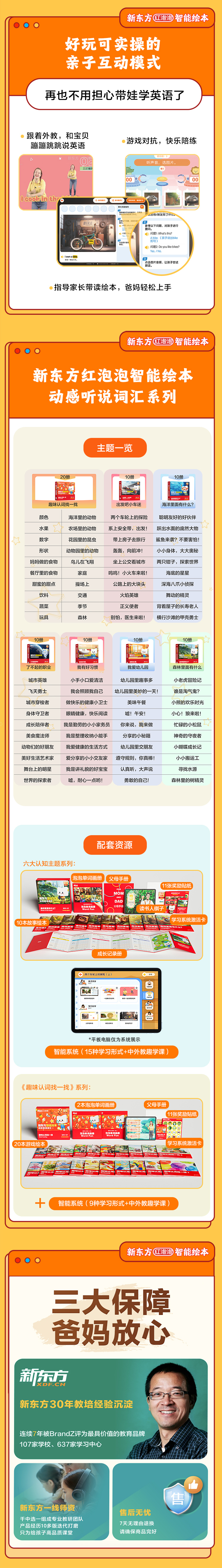【新东方红泡泡】智能绘本动感听说词汇 给孩子更好的英语启蒙 积累1000+听说词汇