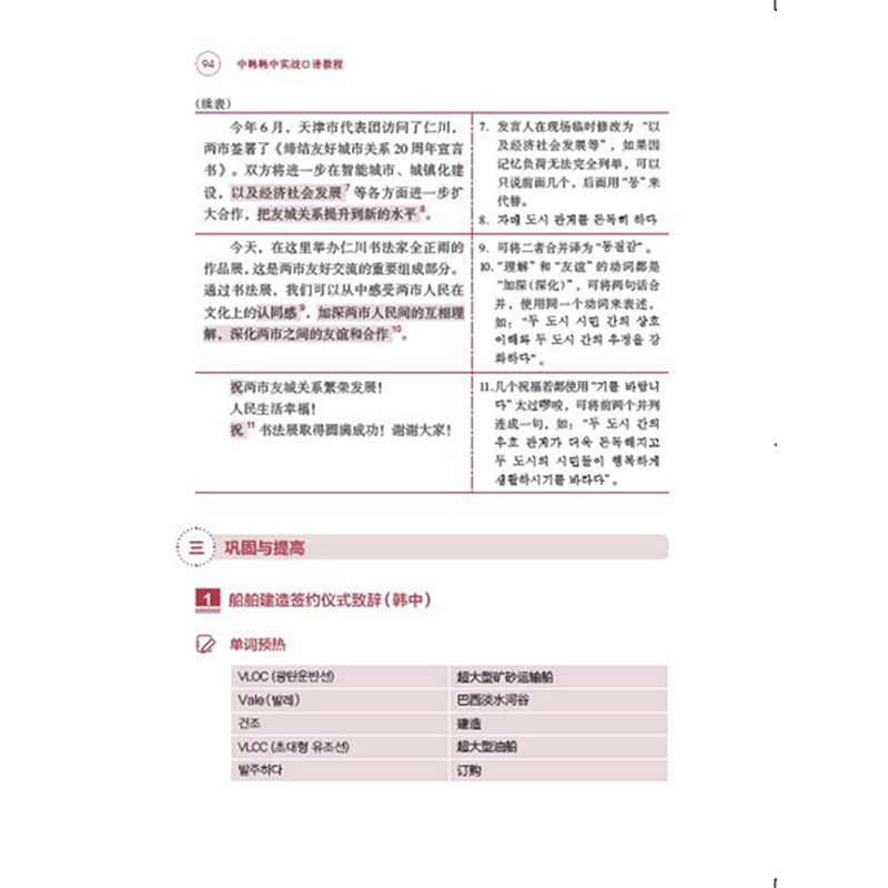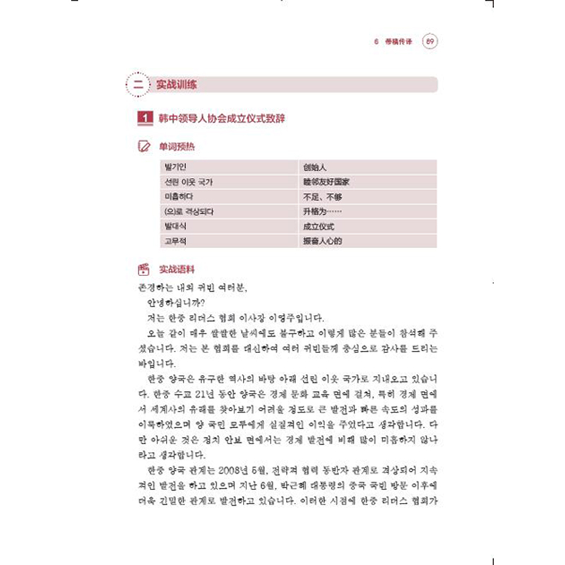 《中韩韩中实战口译教程》共12课,由基础篇、交传篇、同传篇三大部分构成。