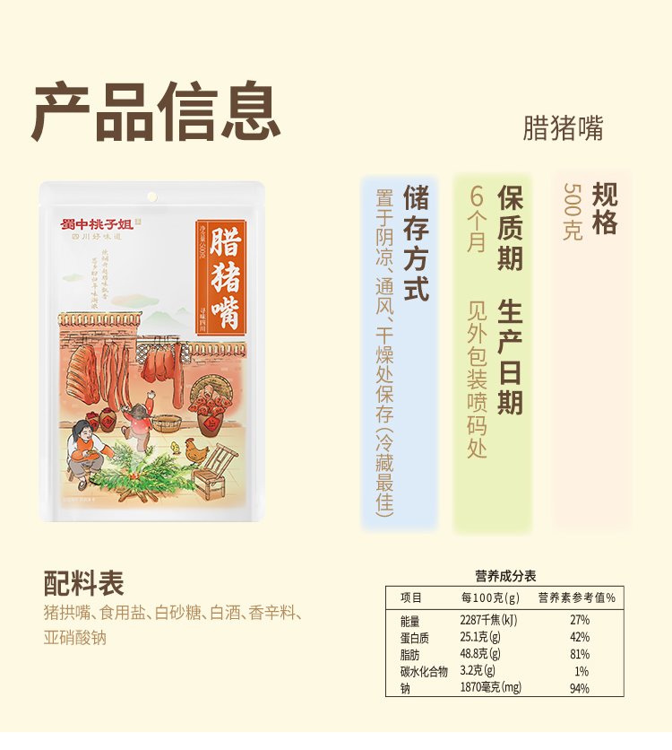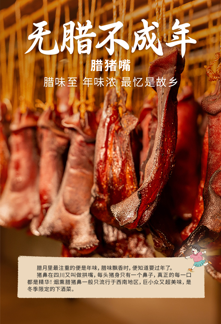 【自营】 腊猪嘴 500g 柴火慢熏 低盐腌制 腊猪嘴 500g/袋