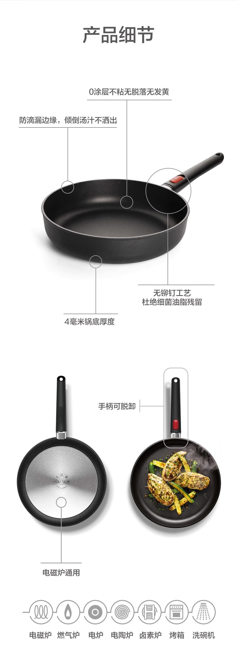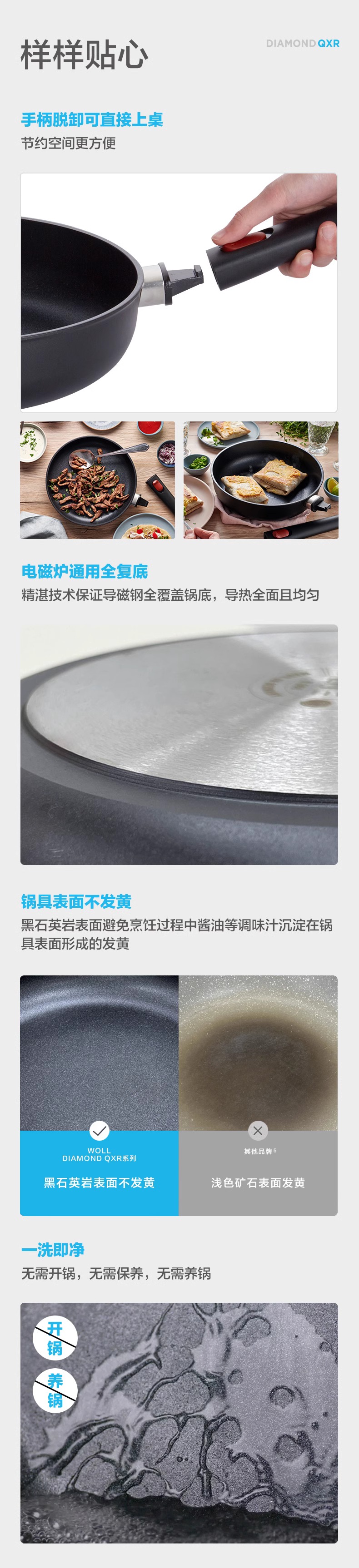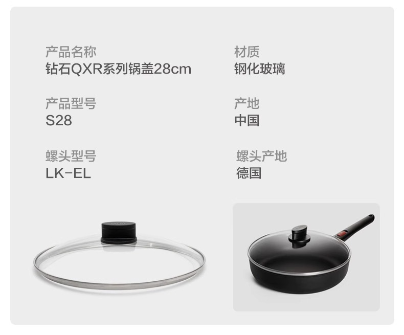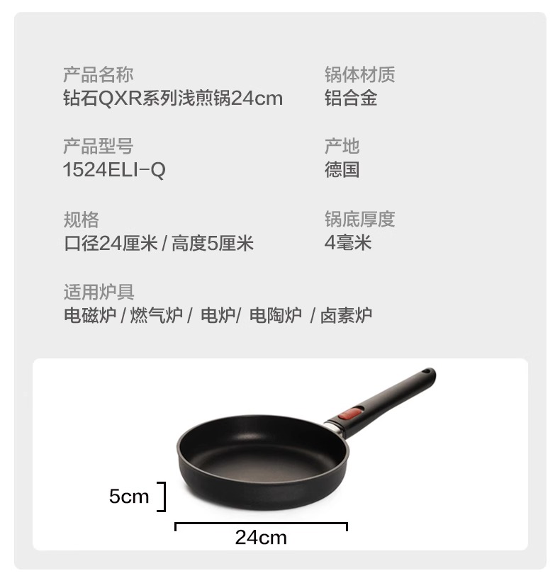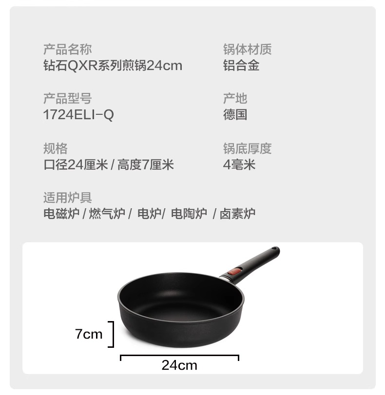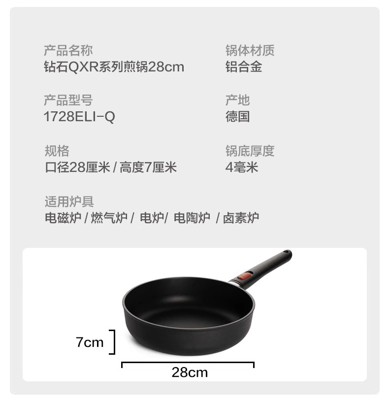WOLL钻石QXR系列无油烟不粘锅煎锅电磁炉平底锅28cm