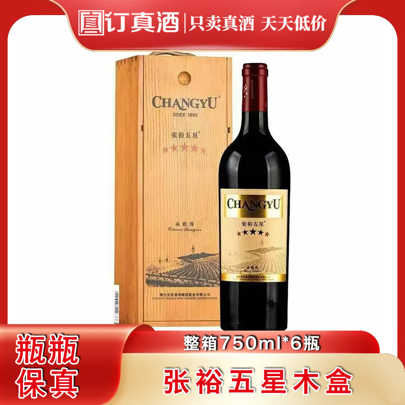 张裕五星赤霞珠干红葡萄酒木盒装 整箱750ml*6瓶包邮