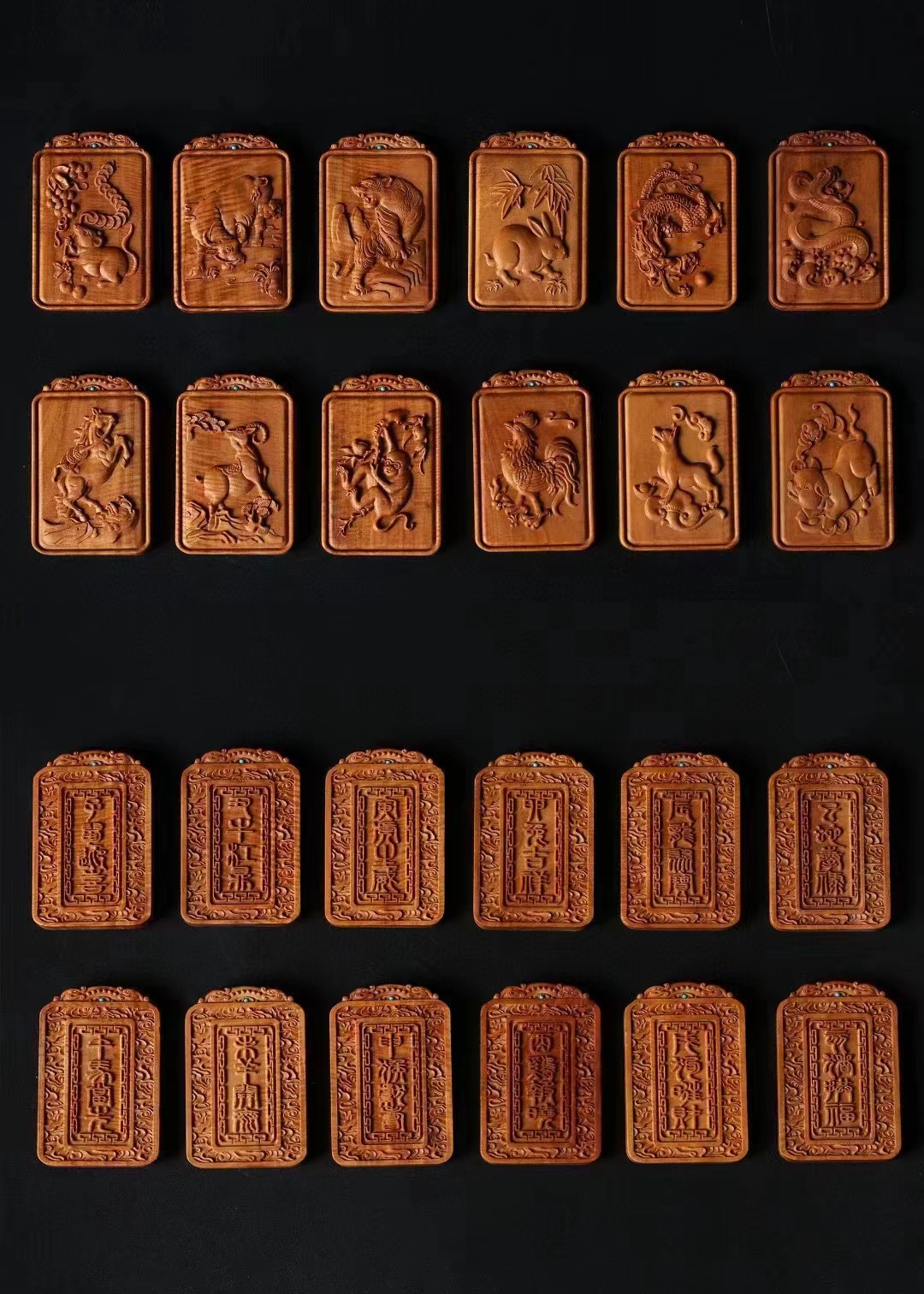 一面刻生肖守护兽,一面刻祝福寄语,