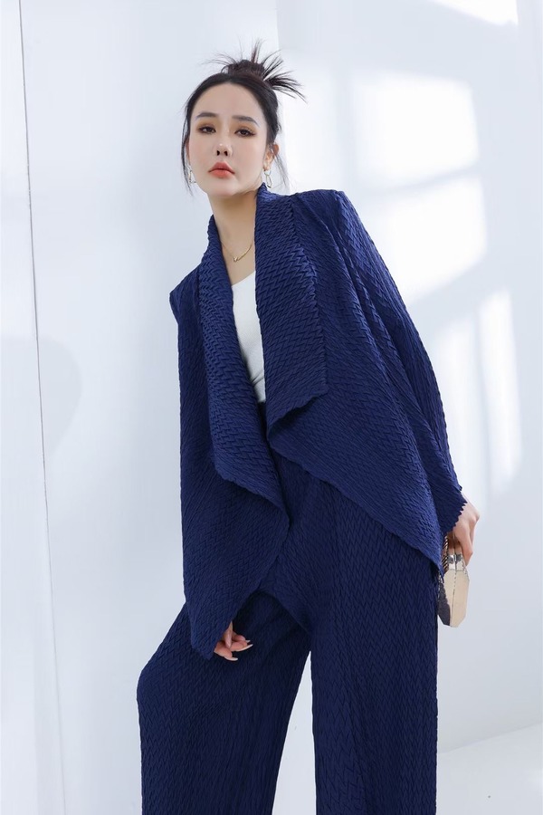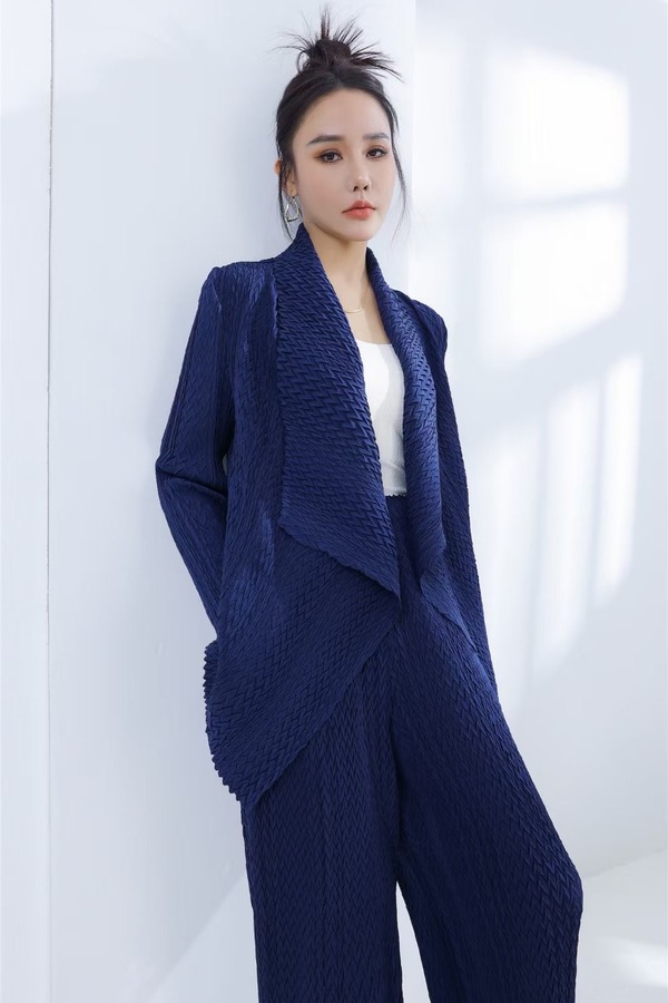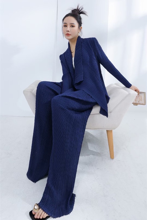 ESTELLICA 知性蓝色褶皱外套长裤套装 19981