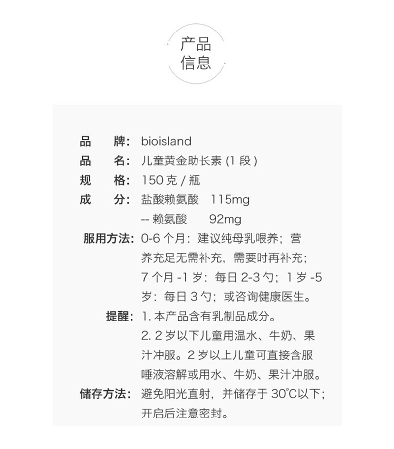 澳洲Bio Island 儿童长高素150g