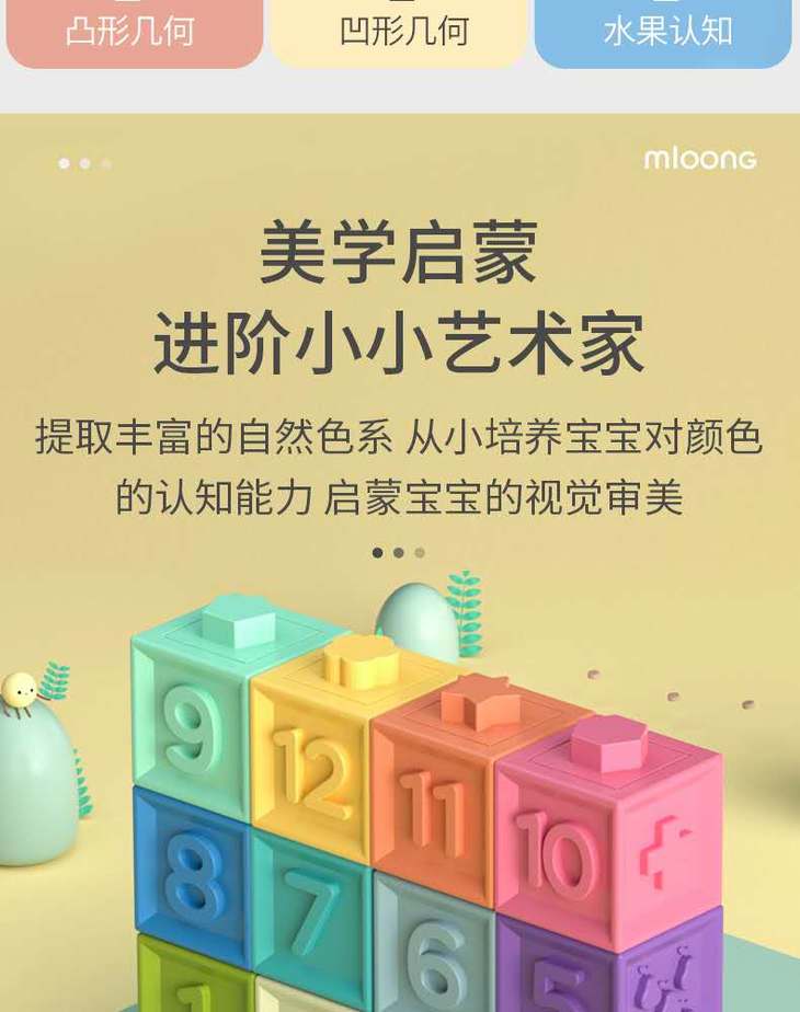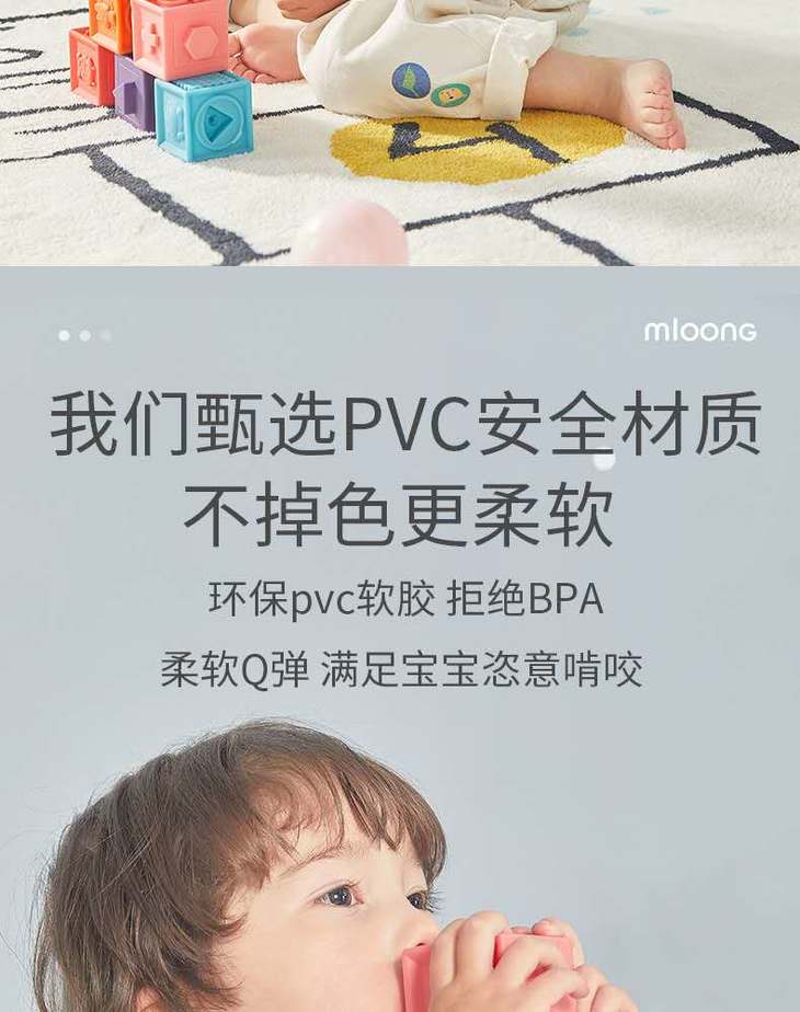 曼龙宝宝软胶浮雕积木可啃咬6-12个月婴儿玩具1-3岁儿童益智玩具