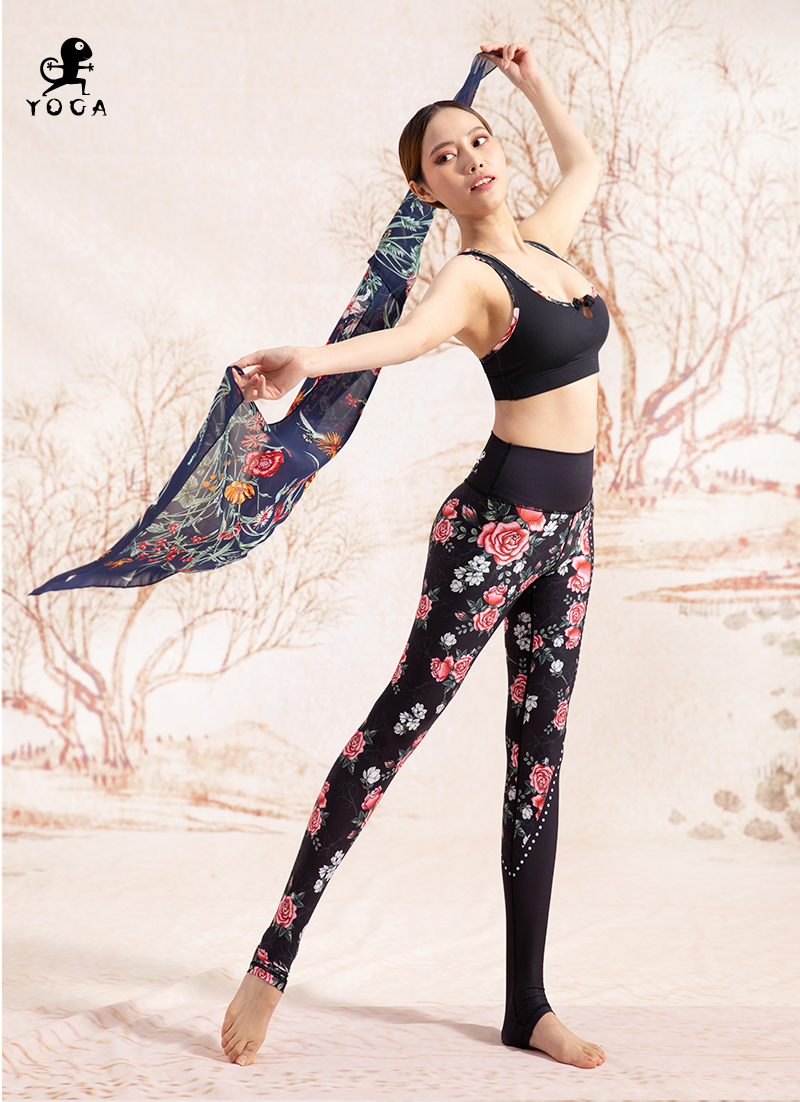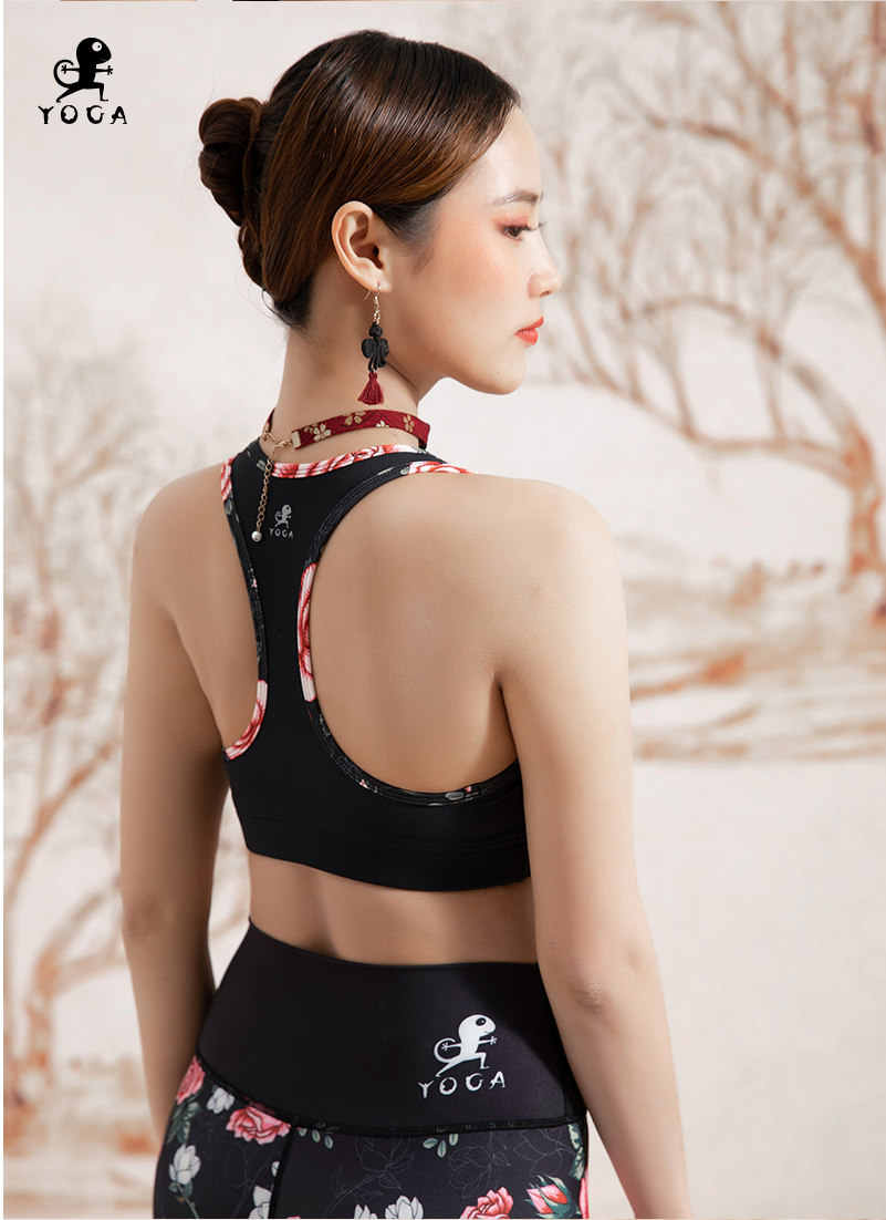 壁虎瑜伽 2202SY156牡丹印花聚拢文胸(有胸垫)清仓不退不换