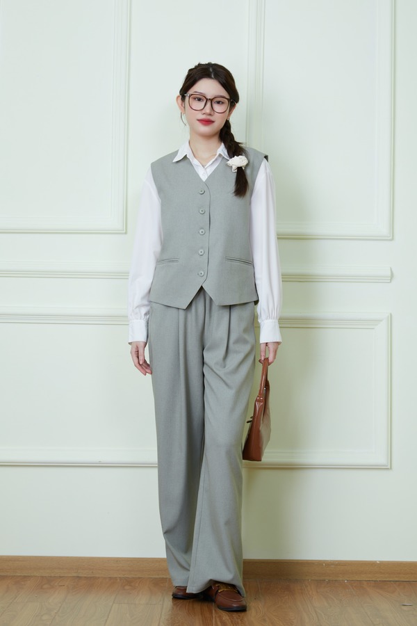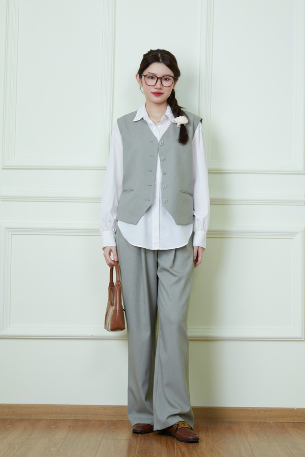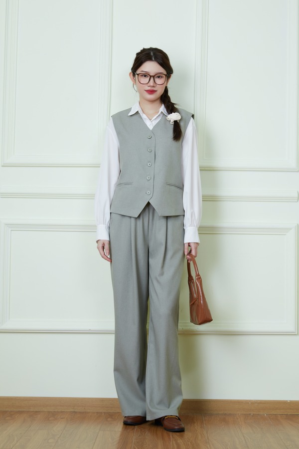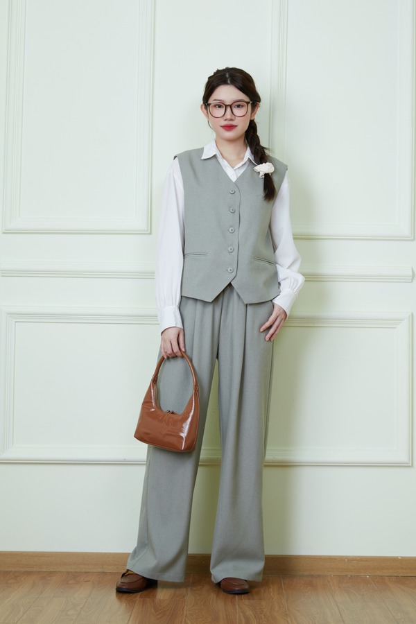 ESTELLICA 卡其色气质休闲马甲西裤套装 19999