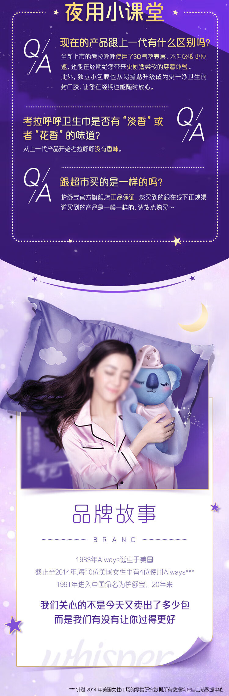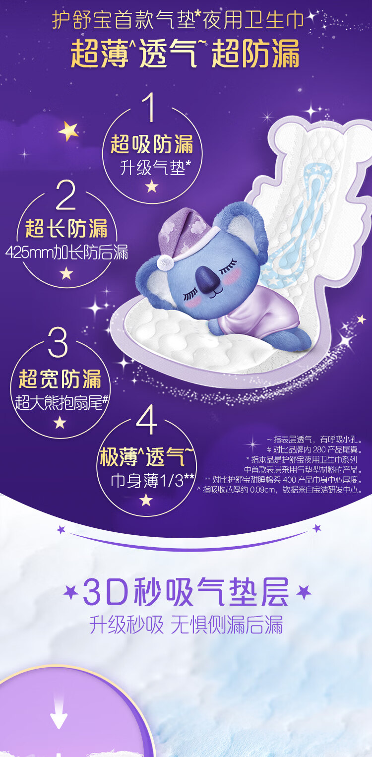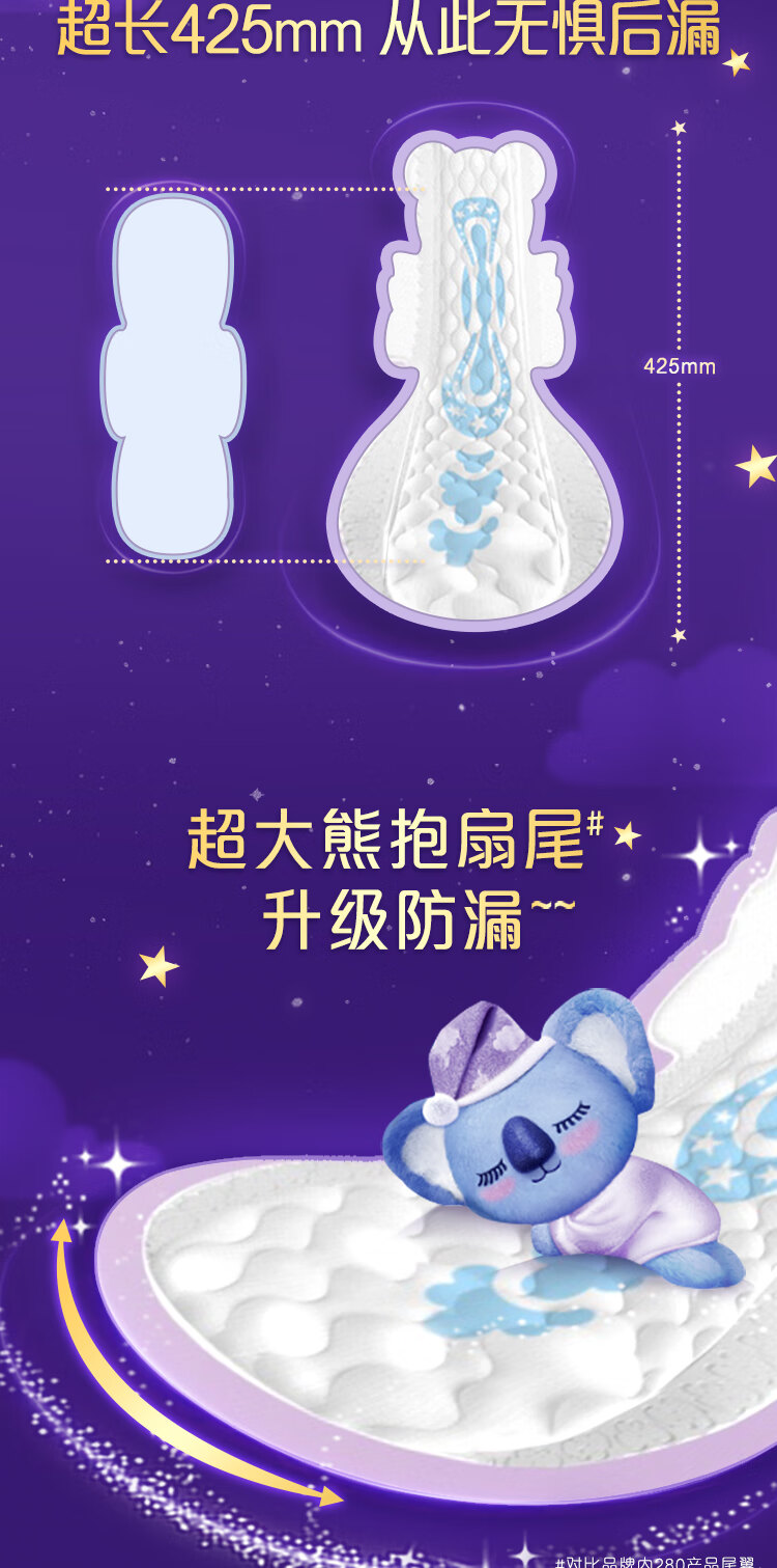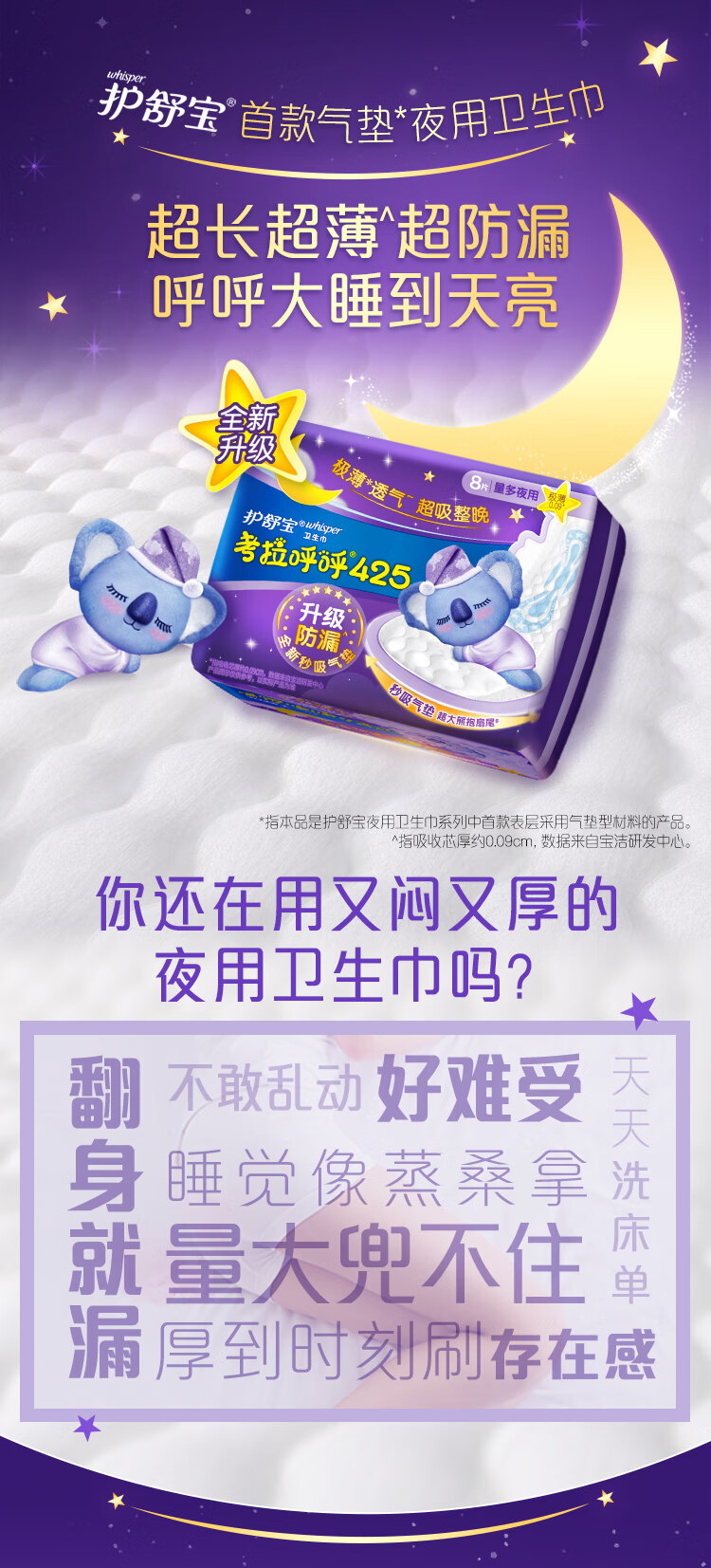 护舒宝考拉呼呼极薄卫生巾超长夜用425mm8片/包