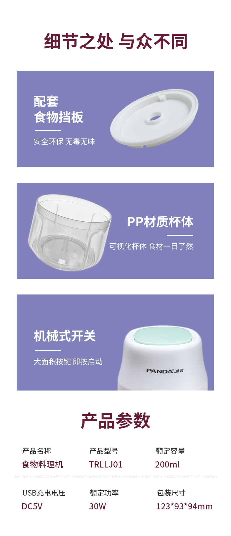【自营】熊猫食物料理机TRLLJ01