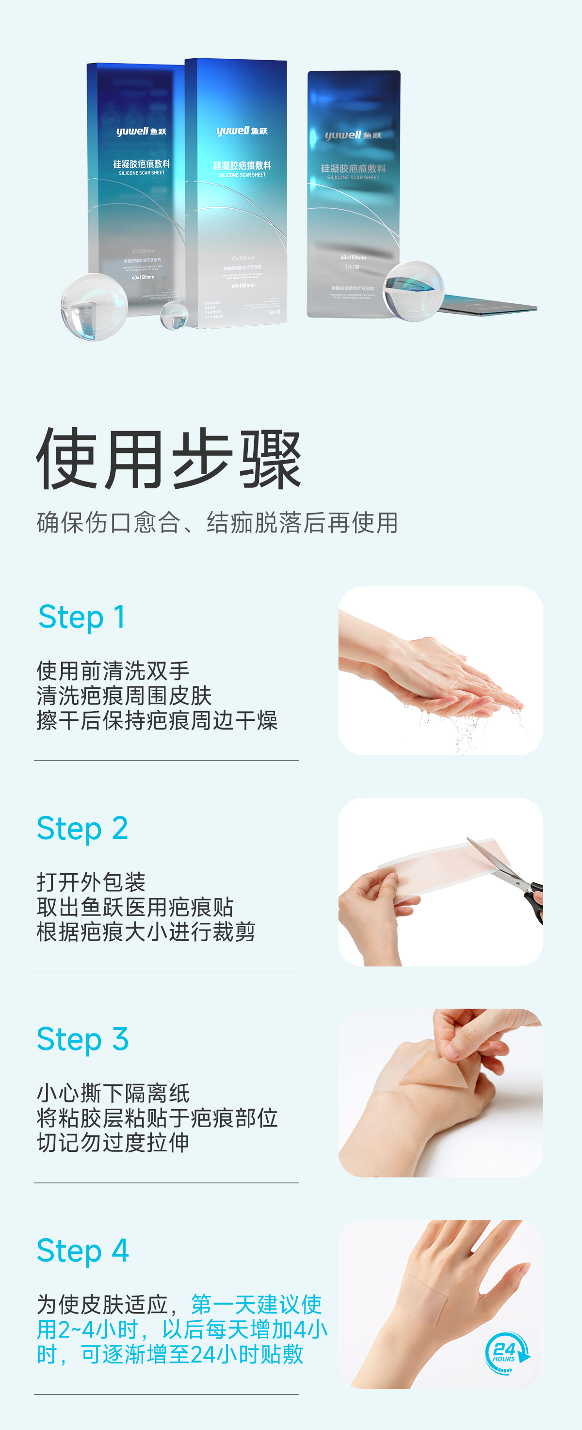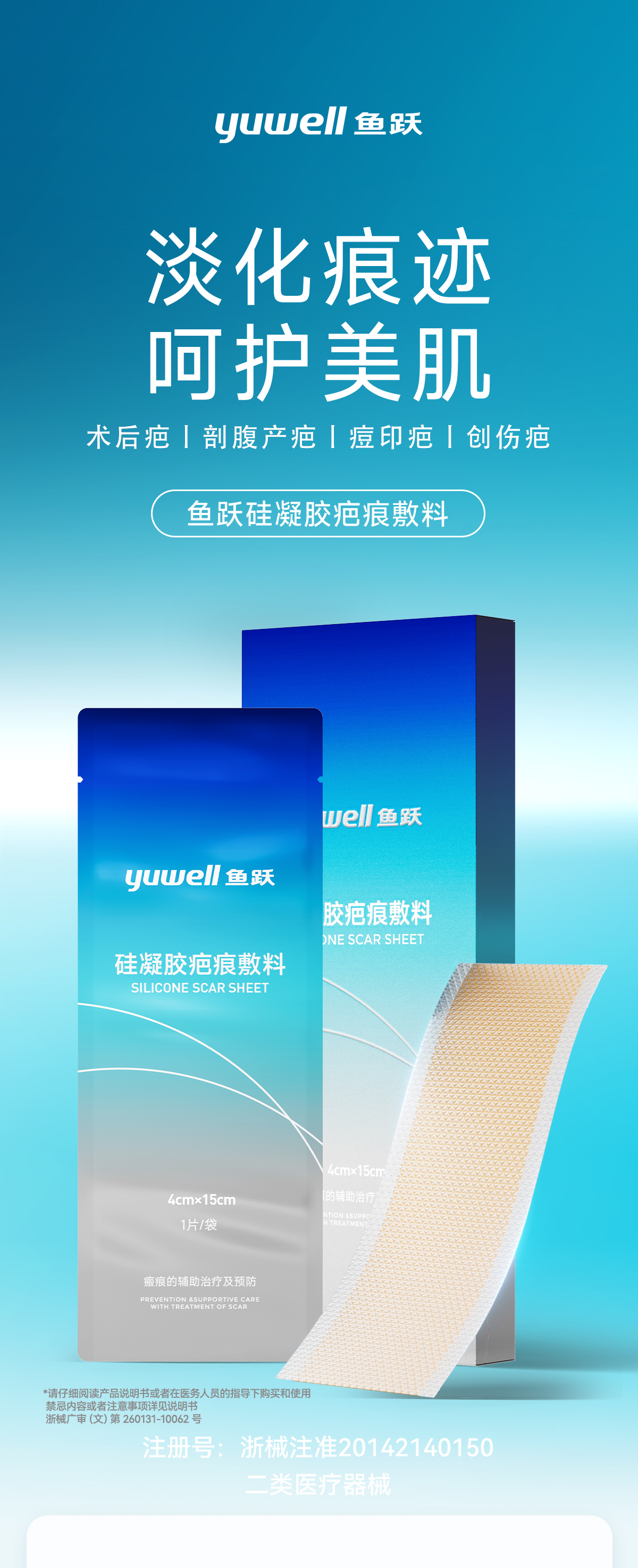 鱼跃祛疤修复硅凝胶疤痕敷料剖腹产疤痕贴