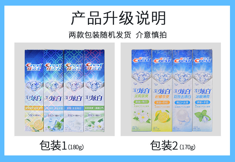 「五款可选」佳洁士3D炫白牙膏薄荷柠檬口气清新牙膏家庭装小苏打口腔护理