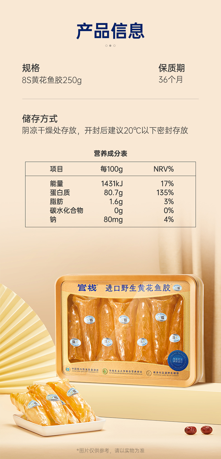 【新品上市】官栈8S黄花鱼胶 干花胶250g 商品图6
