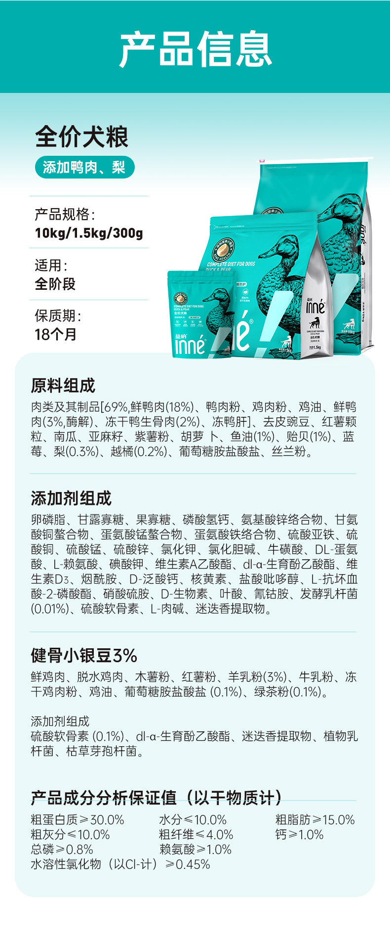 INNE益纳益护系列全价犬粮鸭肉梨