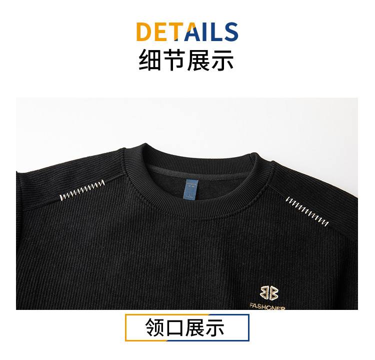 罗蒙秋冬保暖加厚舒适男士卫衣圆领套头卫衣男休闲百搭时尚男卫衣