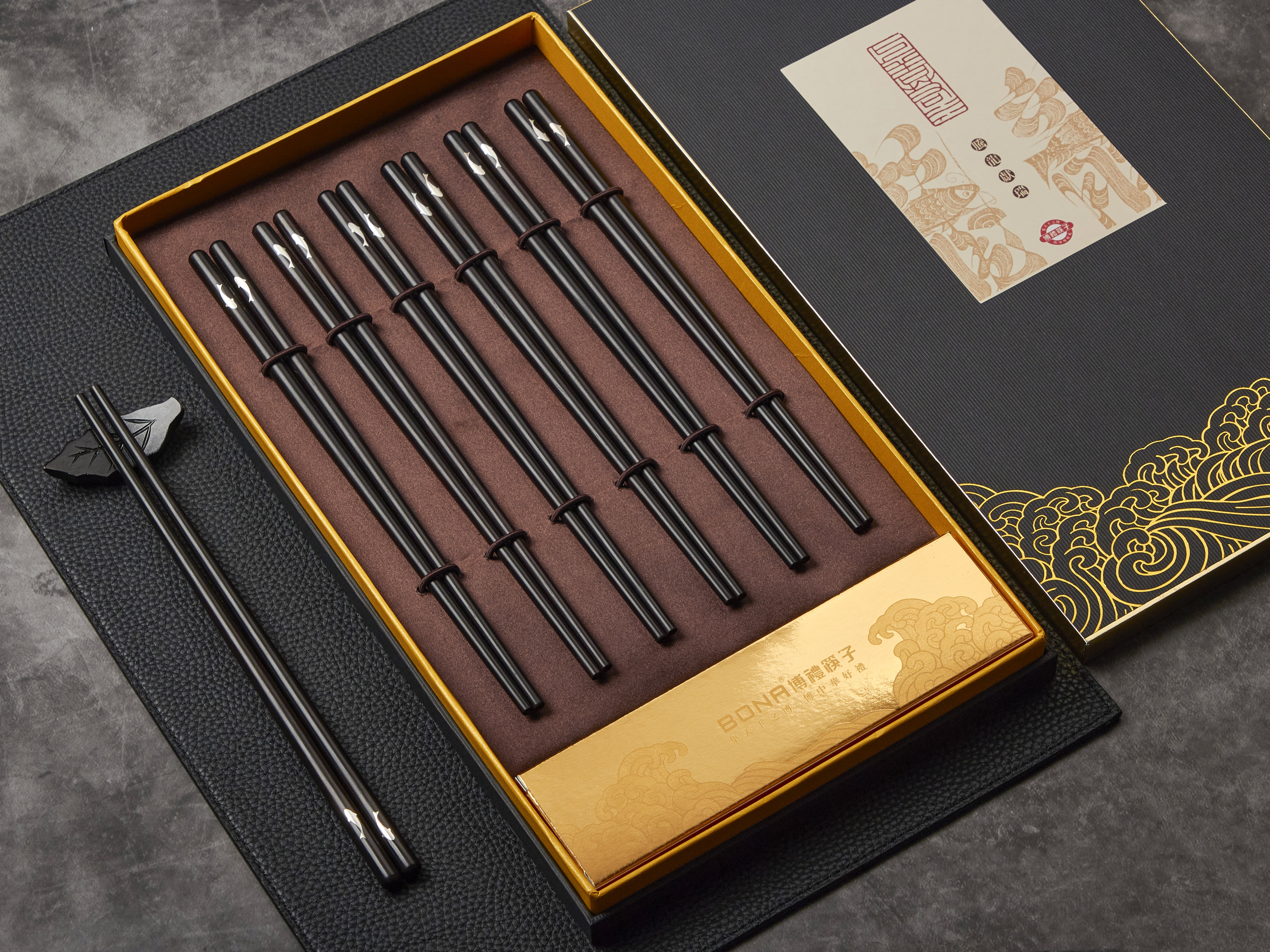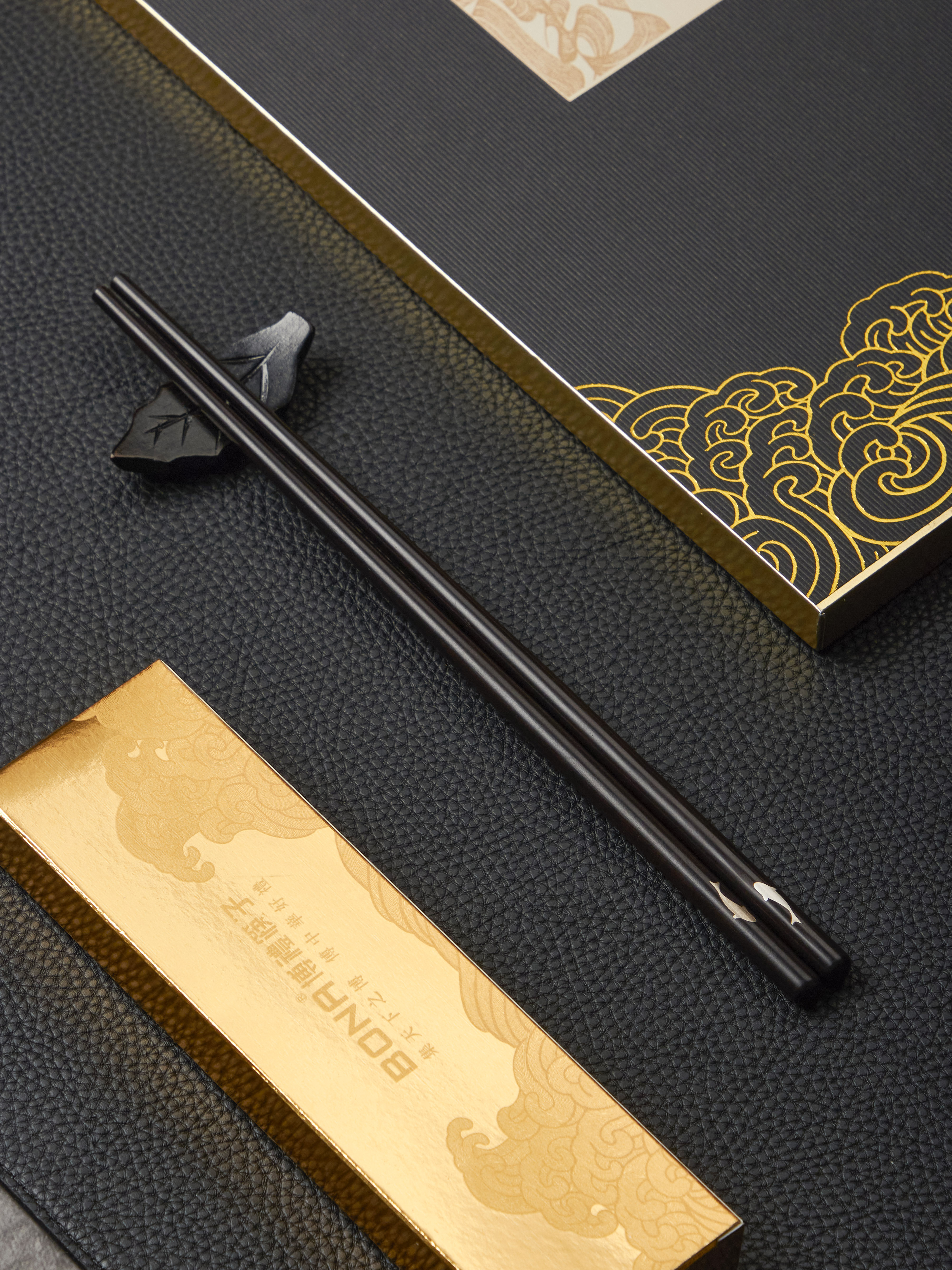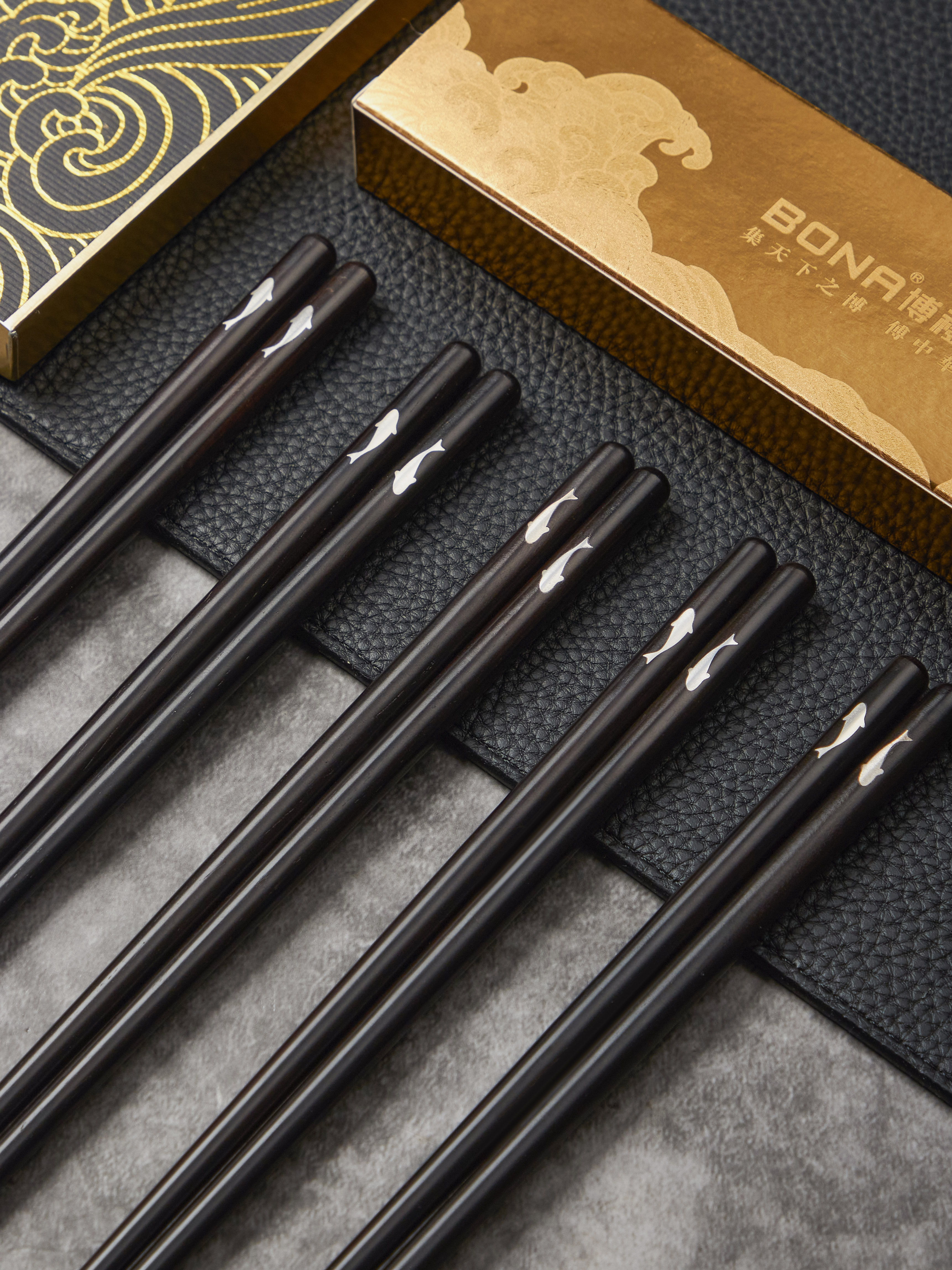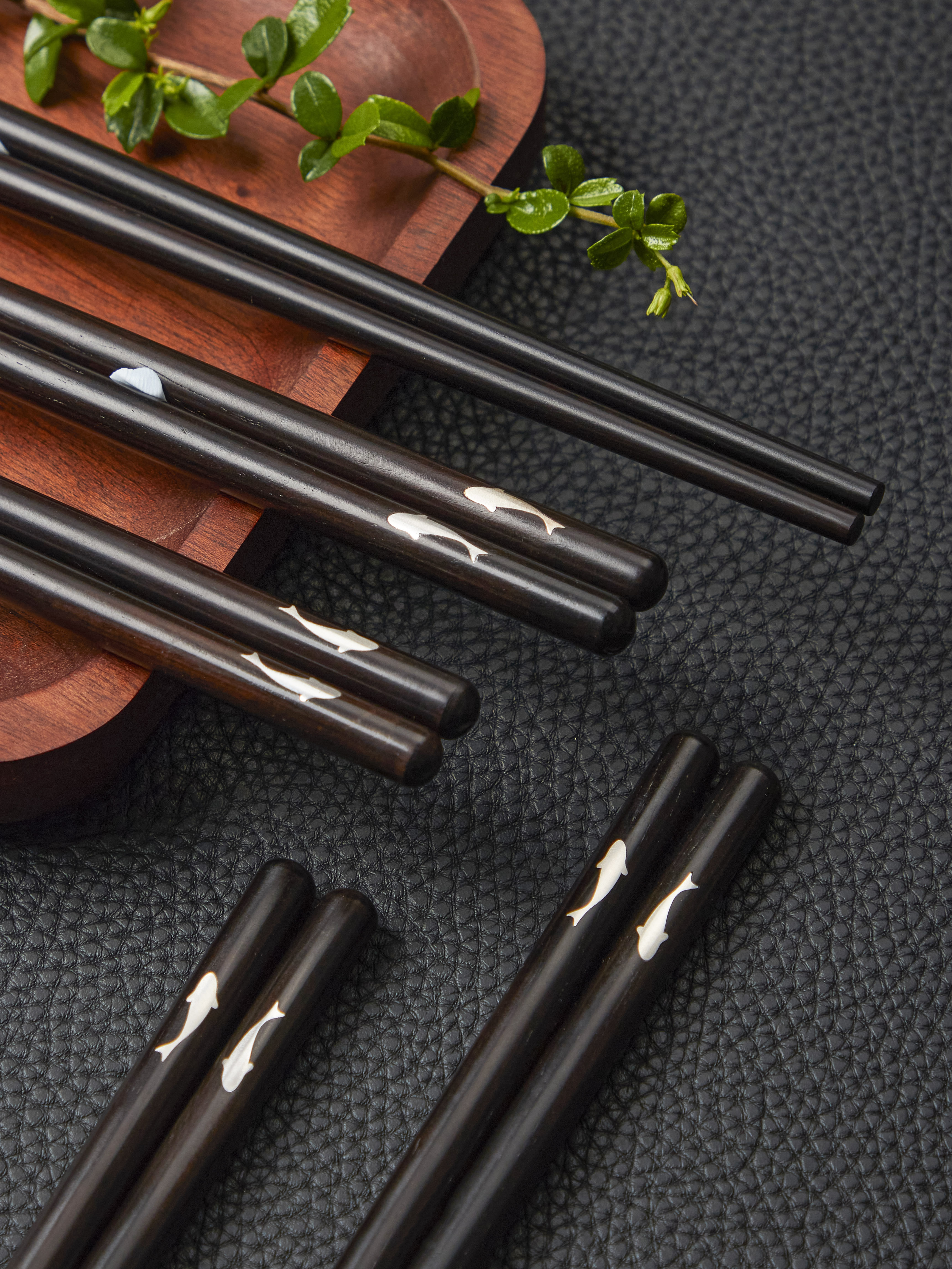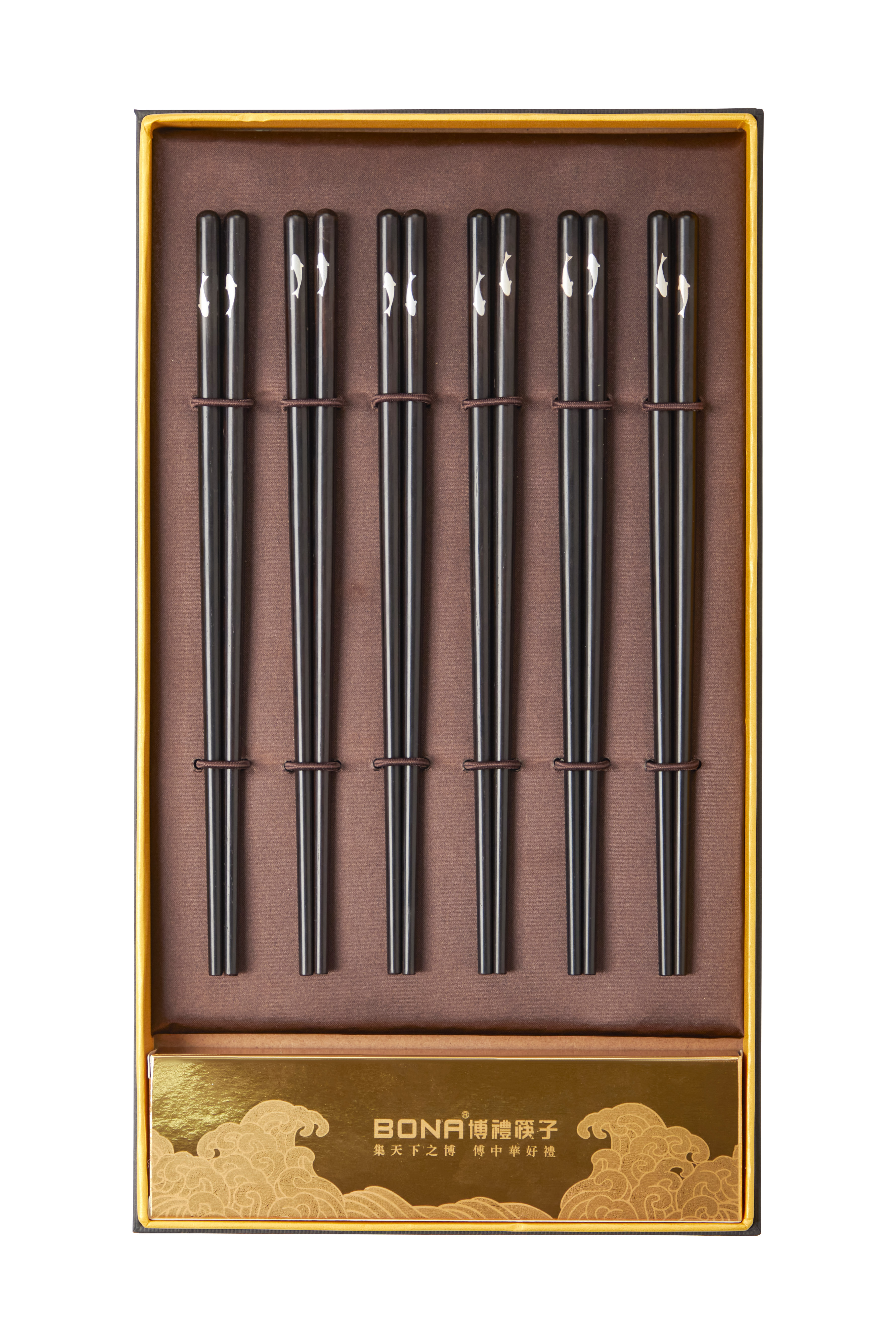 博礼嵌银黑檀木筷子(有鱼)-YHD