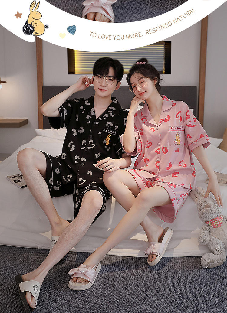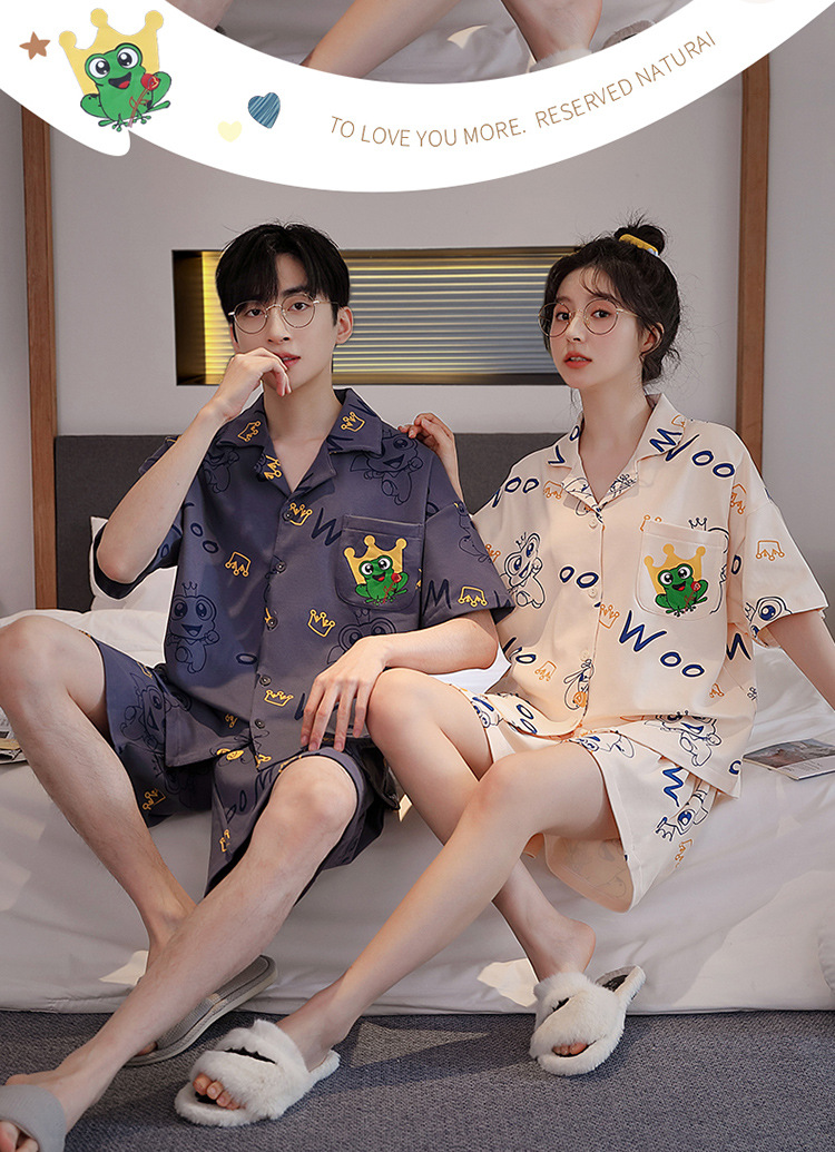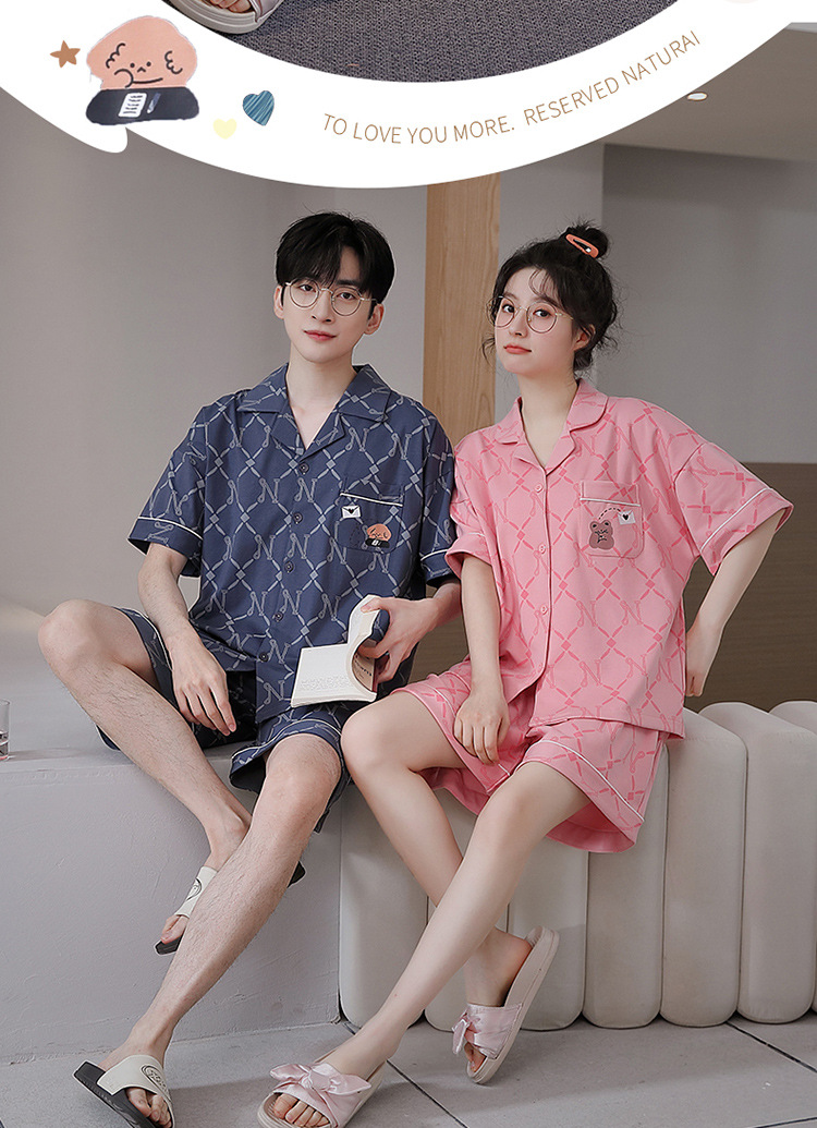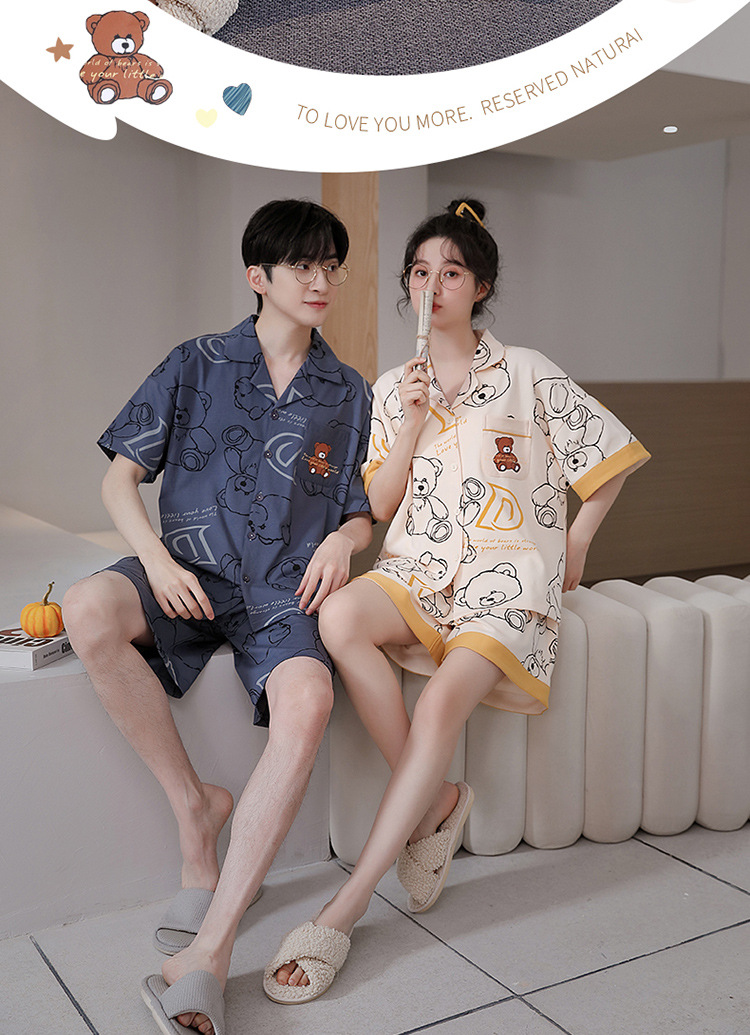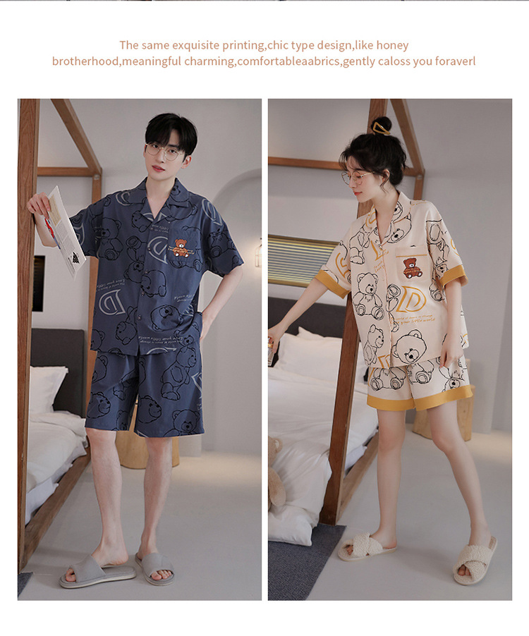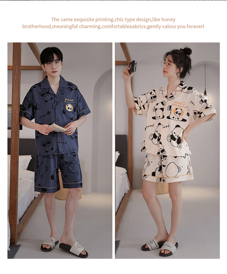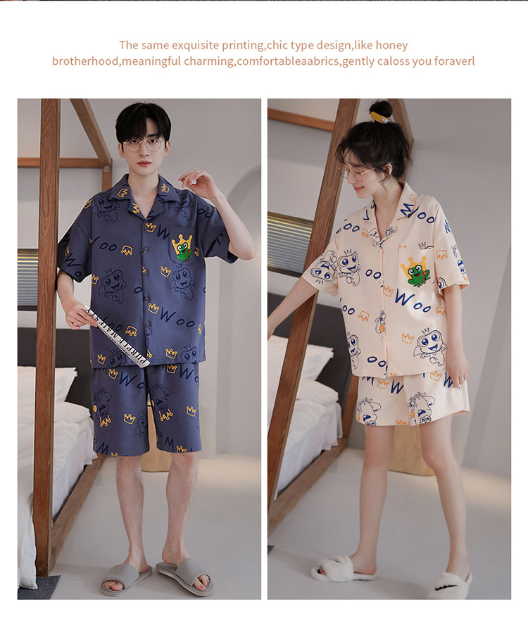 情侣睡衣夏季开衫短袖短裤两件套女生卡通休闲可外穿家居服男士