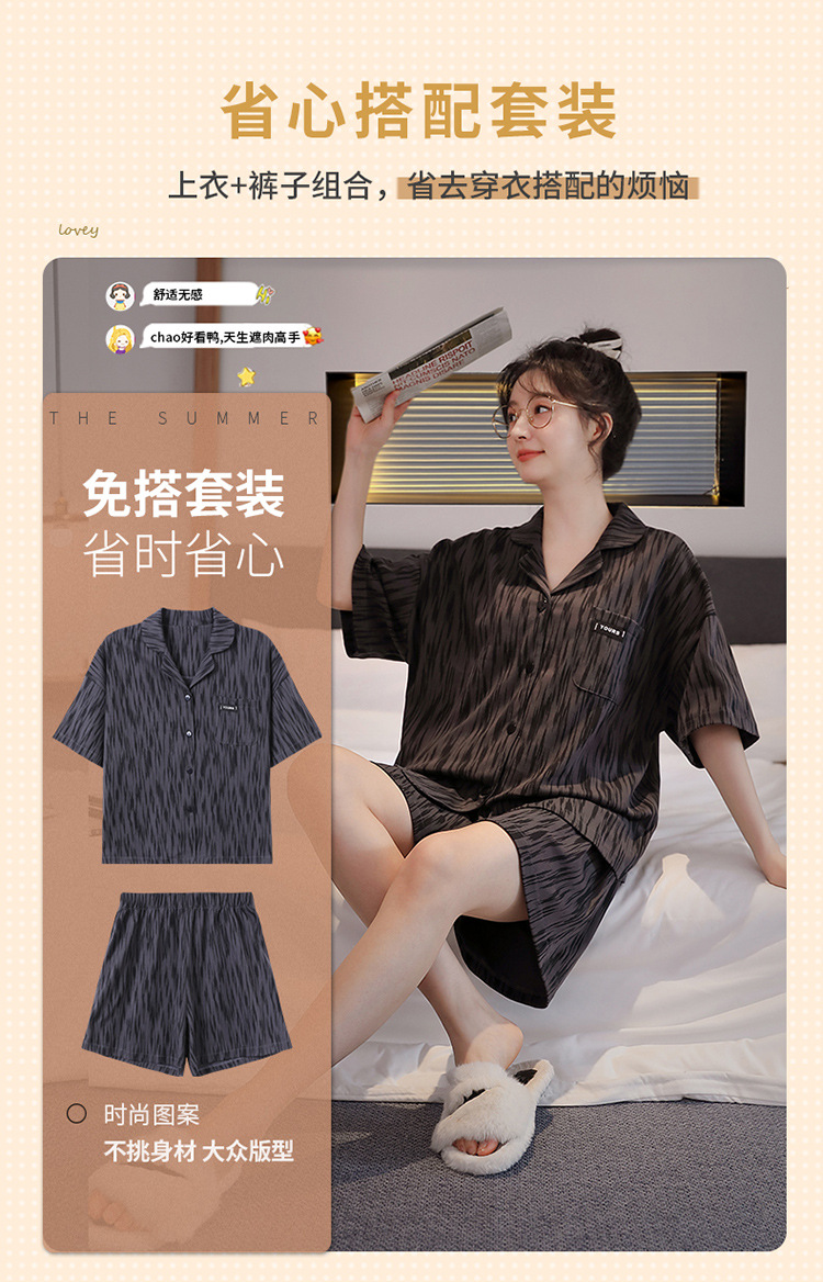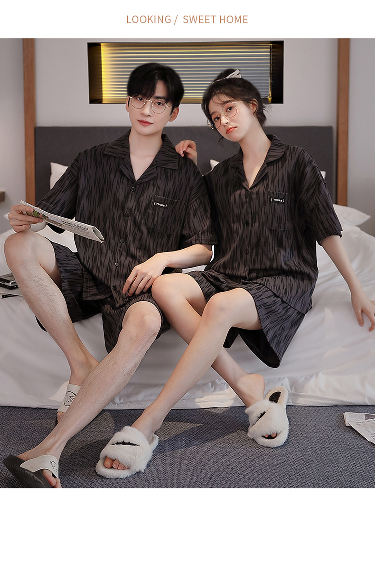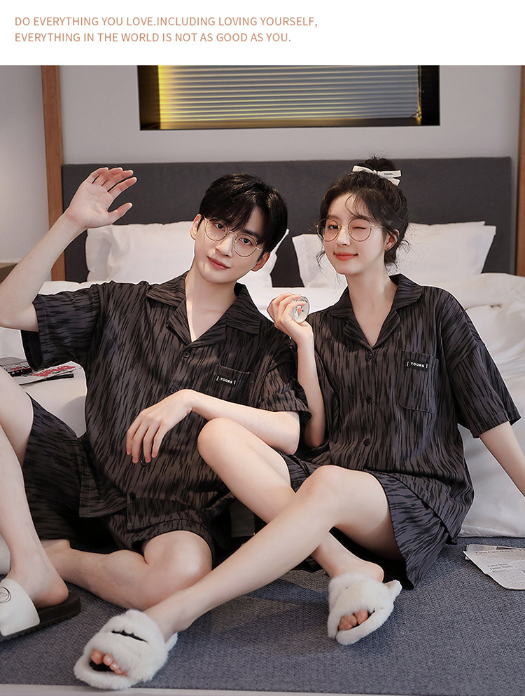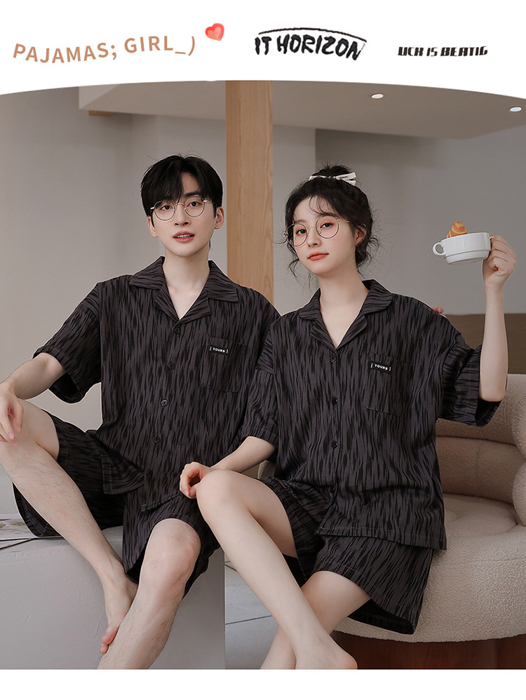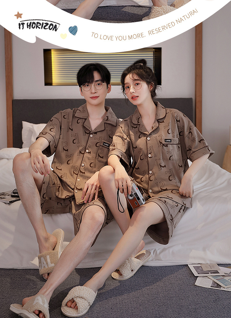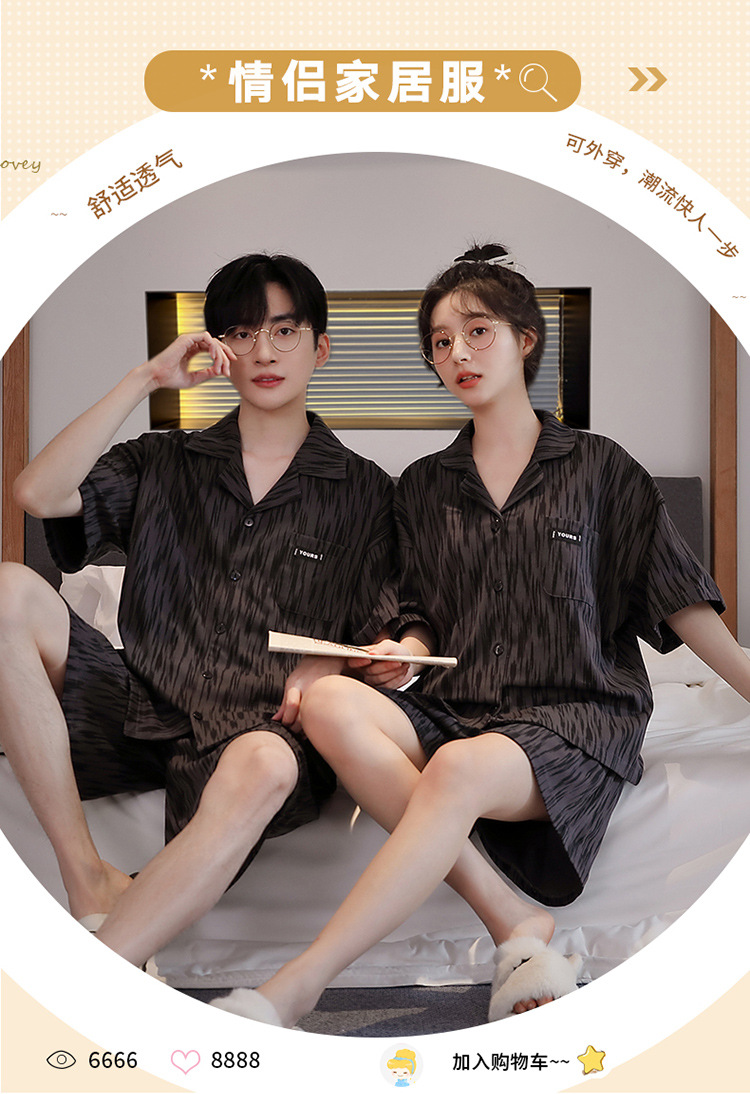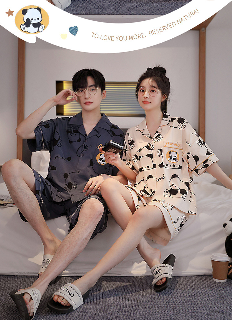 情侣睡衣夏季开衫短袖短裤两件套女生卡通休闲可外穿家居服男士