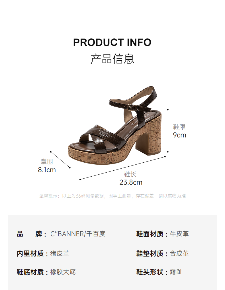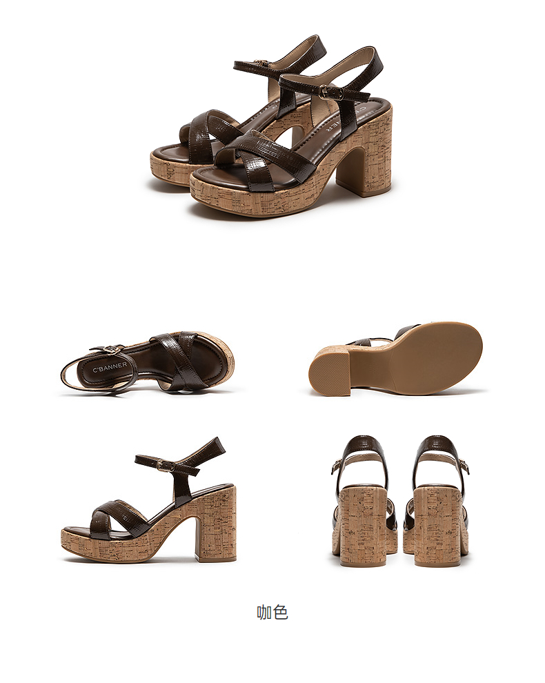 千百度交叉带粗超高跟时装凉鞋女2026夏季新款增高真皮绝美凉鞋A26380616