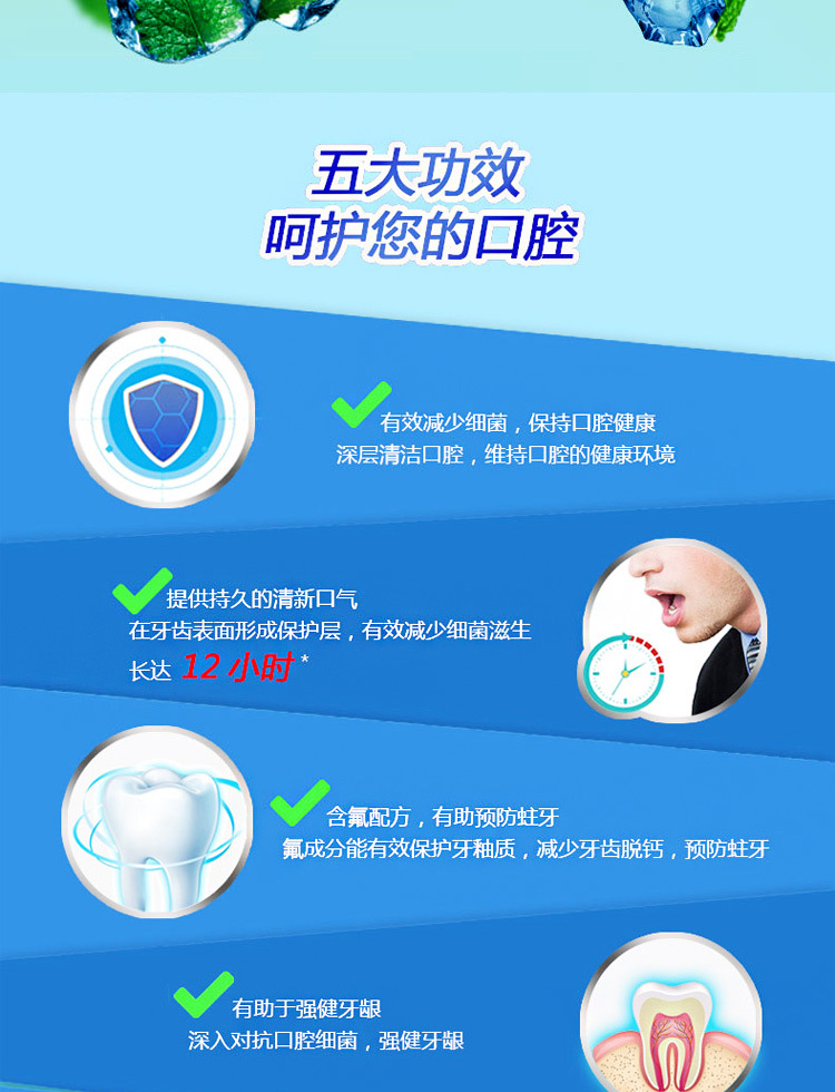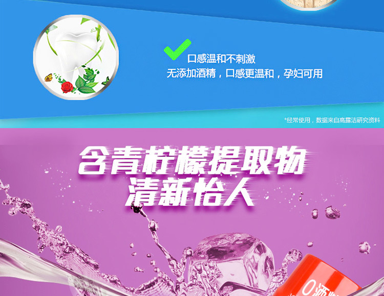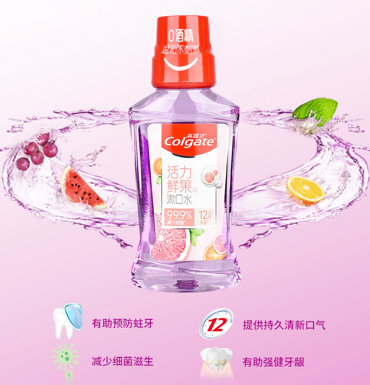 「三款口味!便携装」高露洁漱口水口气清新薄荷鲜果250mL清洁口腔护理便携