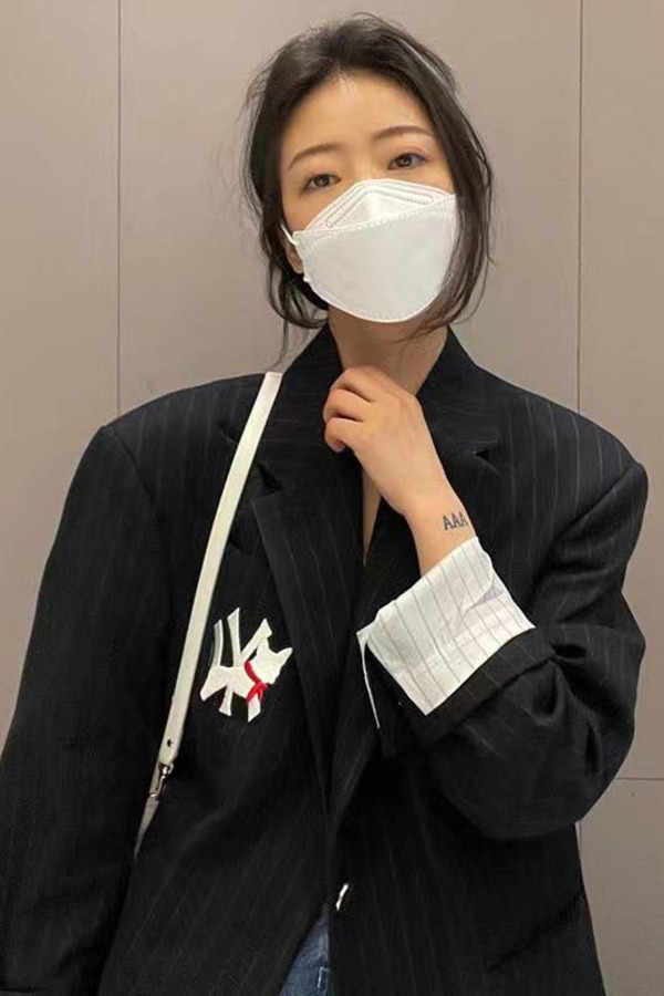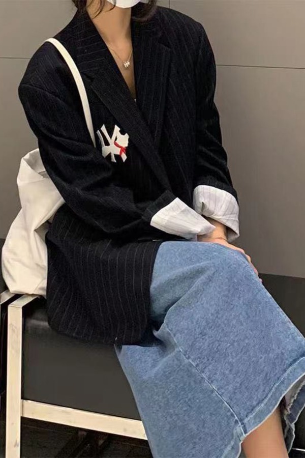 LNNNS 藏蓝色字母贴布条纹外套 14397