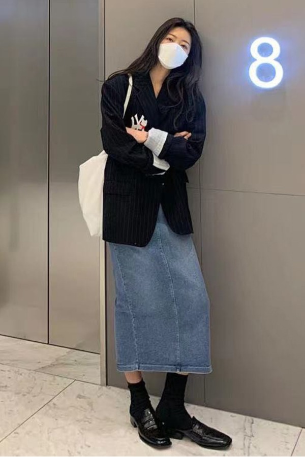 AVA 灰色格纹高腰半身裙 4515