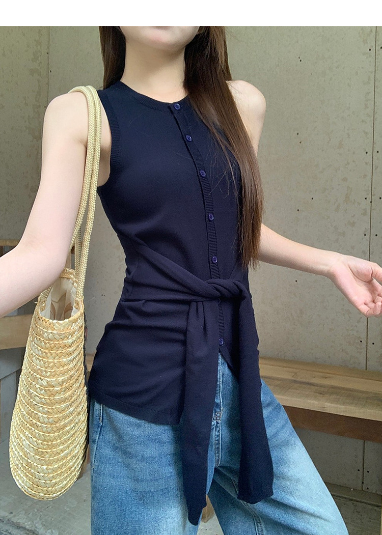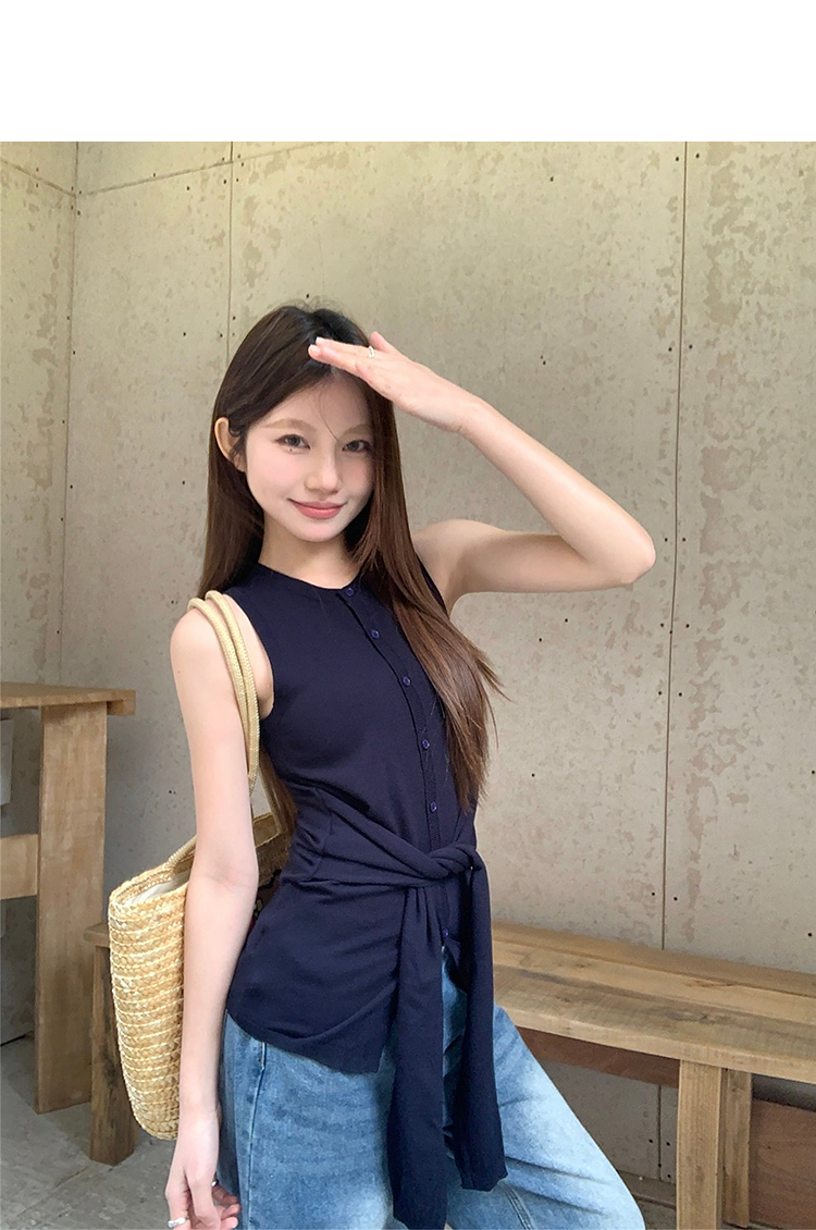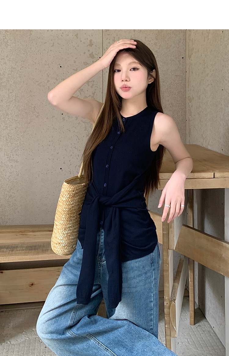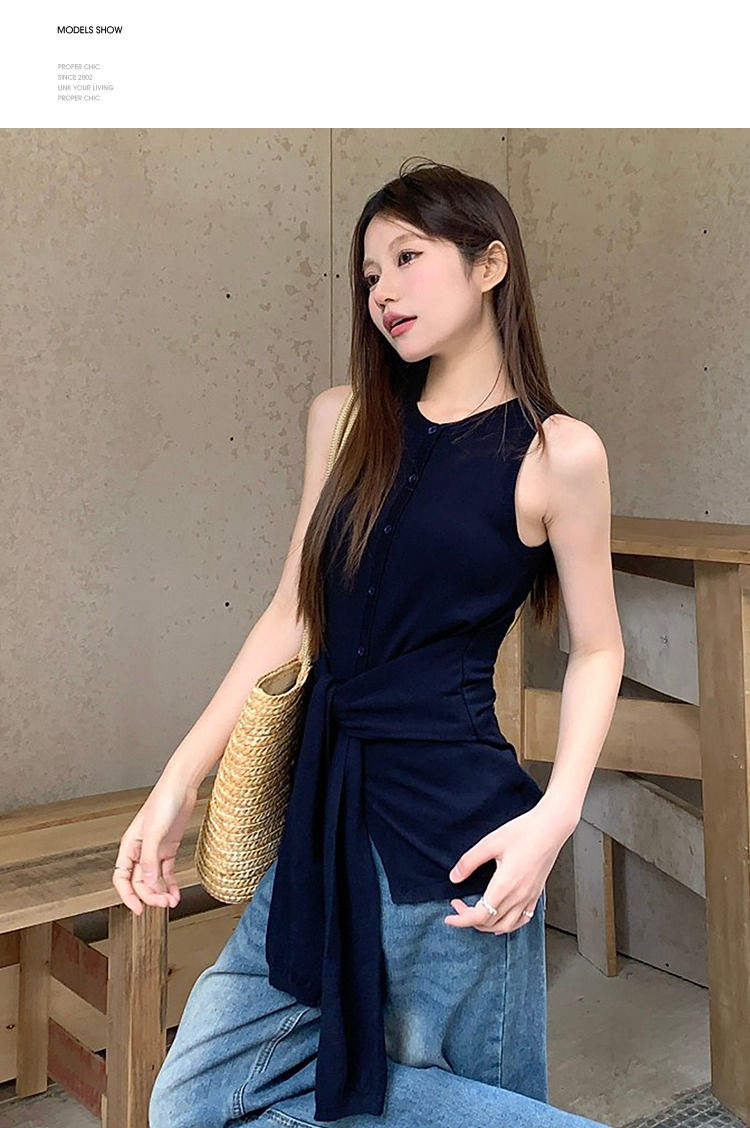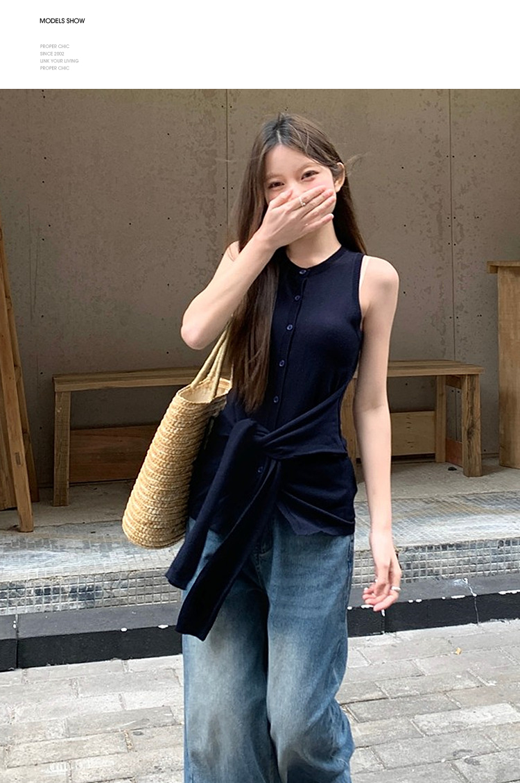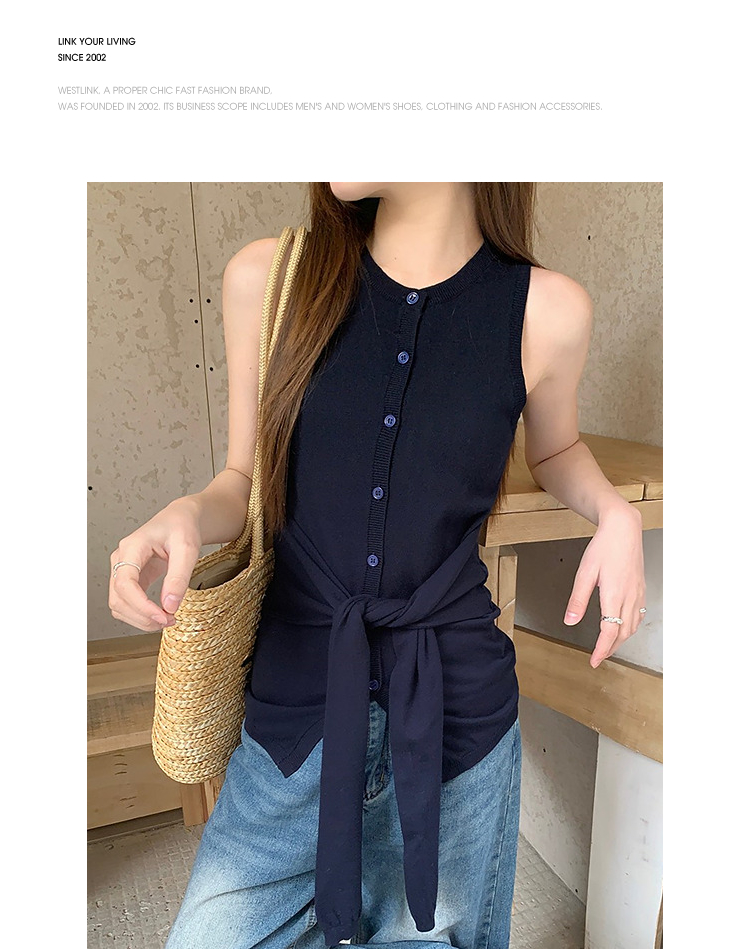 西遇针织背心马甲女2025年春夏新款宝蓝色系带高知穿搭无袖上衣SS150281