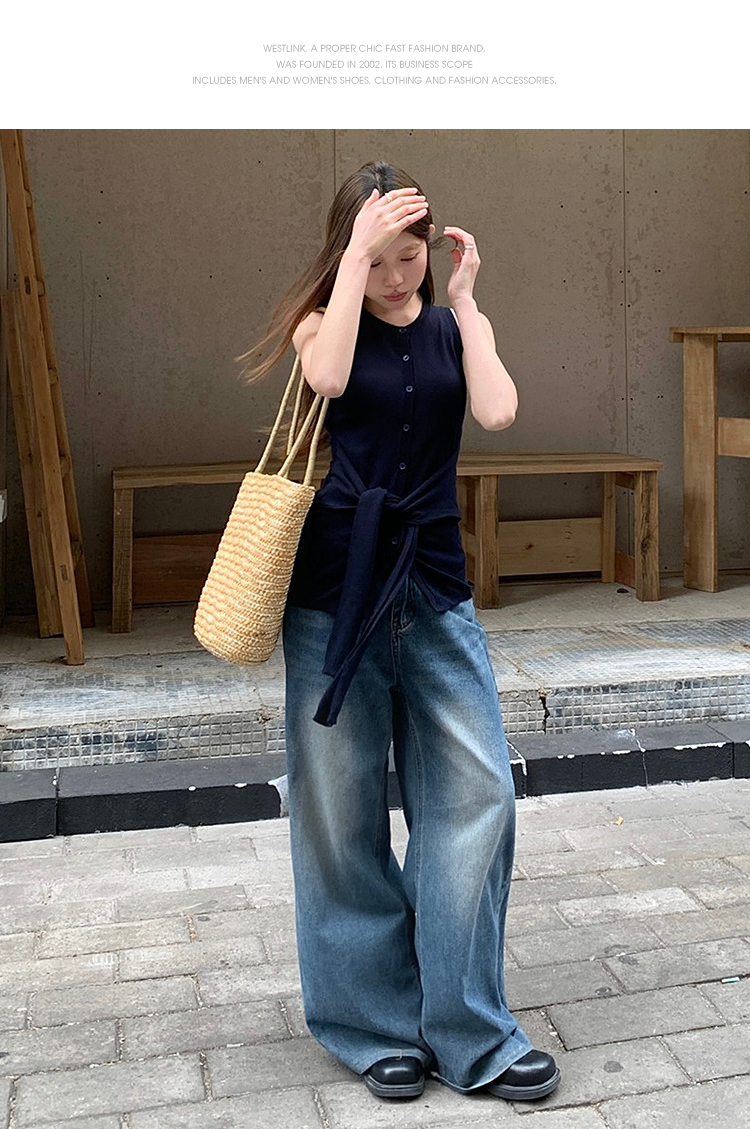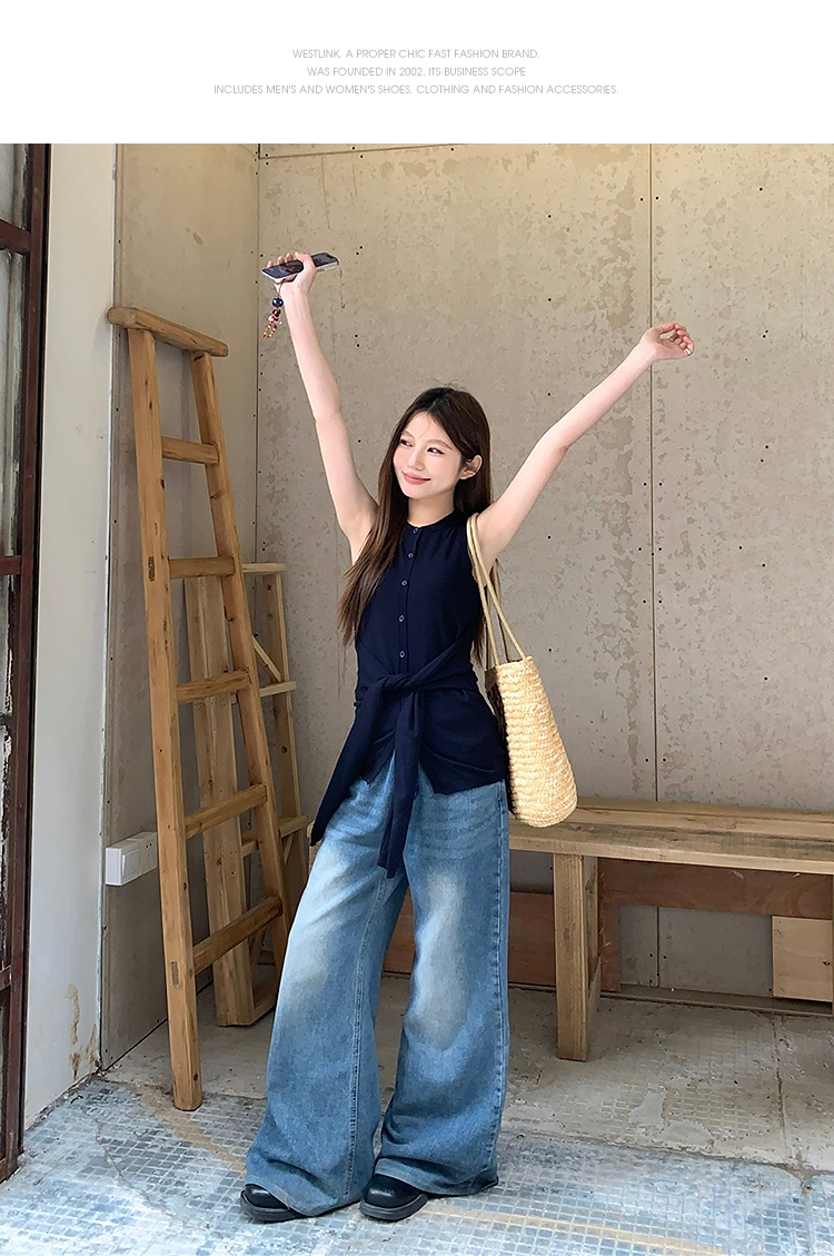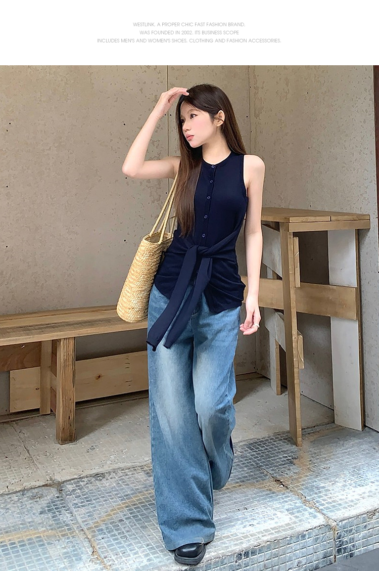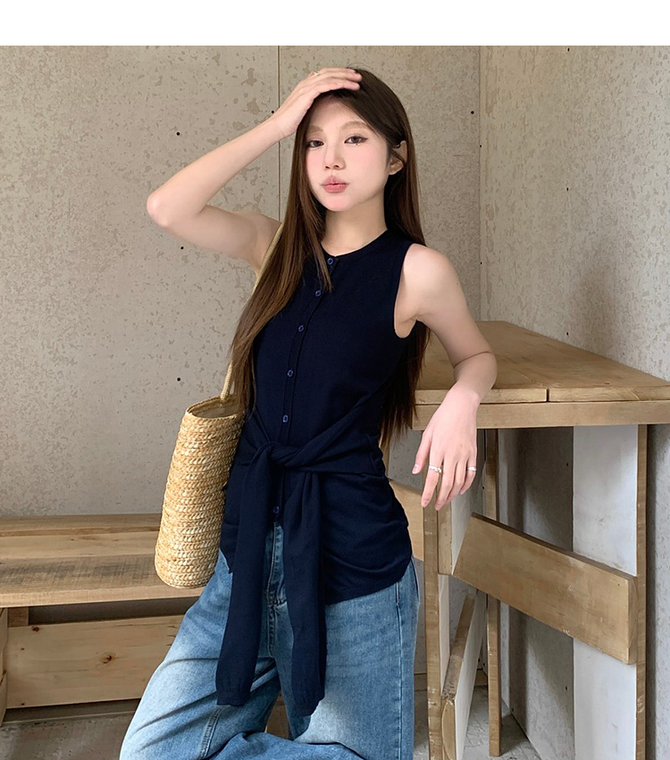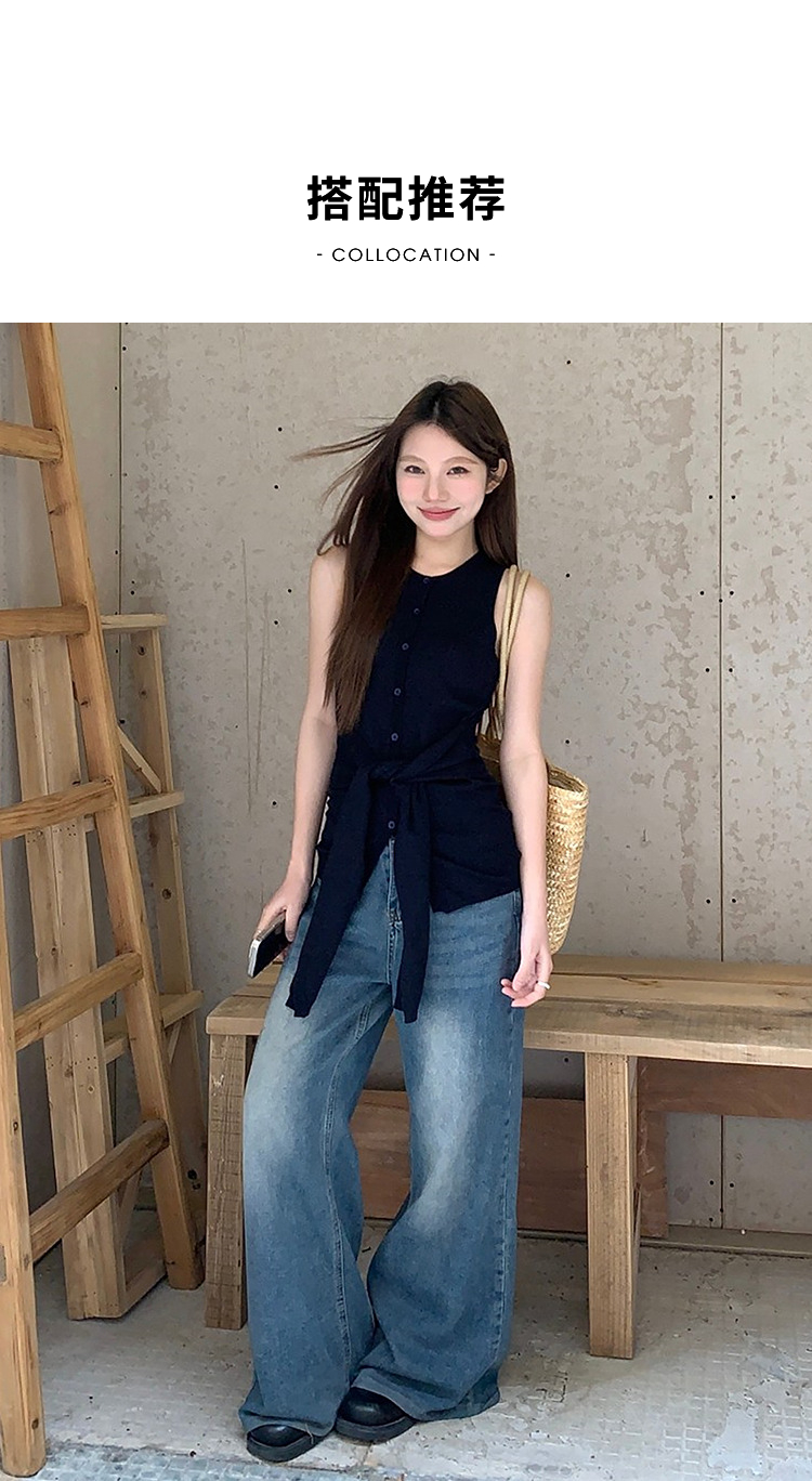 西遇针织背心马甲女2025年春夏新款宝蓝色系带高知穿搭无袖上衣SS150281