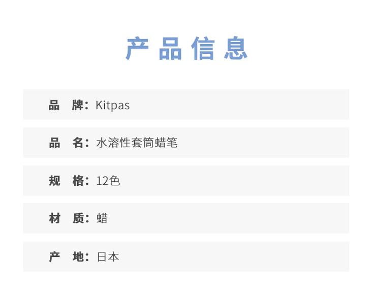 【日本进口】kitpas水溶性套筒12色蜡笔 可擦拭可水洗可调色安全蜡笔
