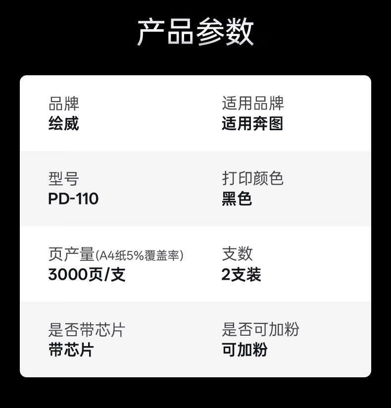 绘威PD-110易加粉硒鼓 DT2 适用奔图PANTUM P1050 P2650 P2650N M5000 M6000 M6005打印机 墨粉盒