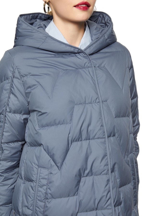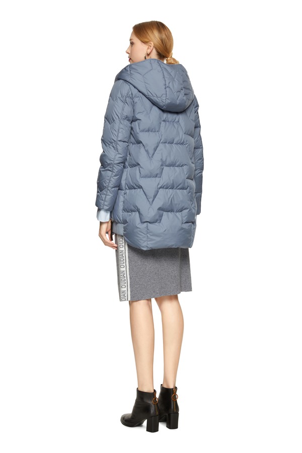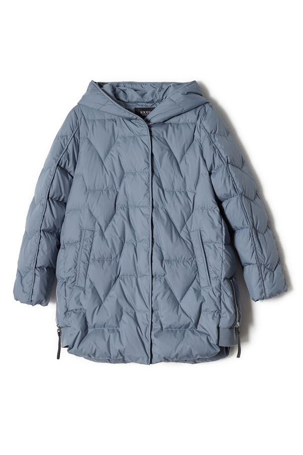 EXUN 灰蓝色绗缝连帽羽绒服 8214