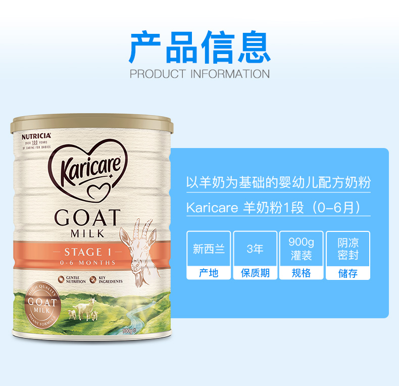 品名:【新包装】Karicare可瑞康羊奶1段 900g/罐