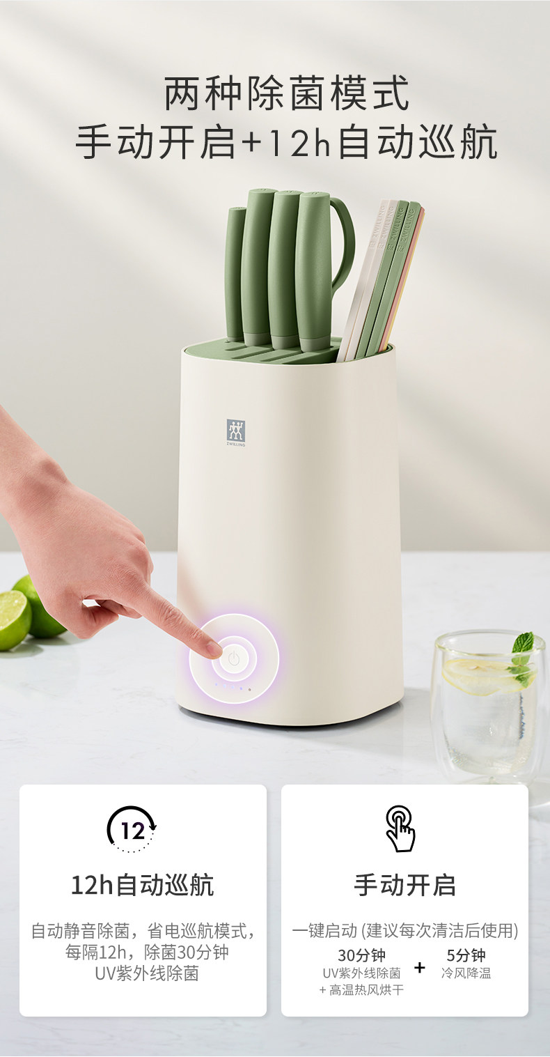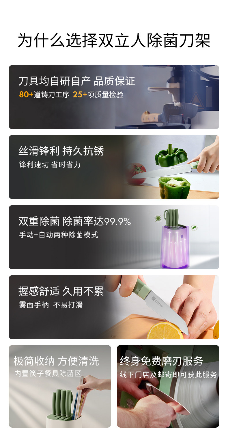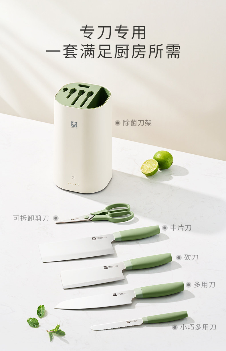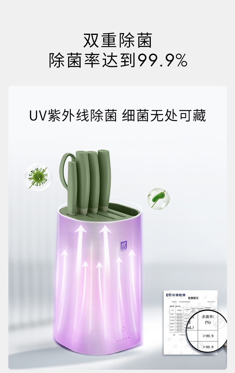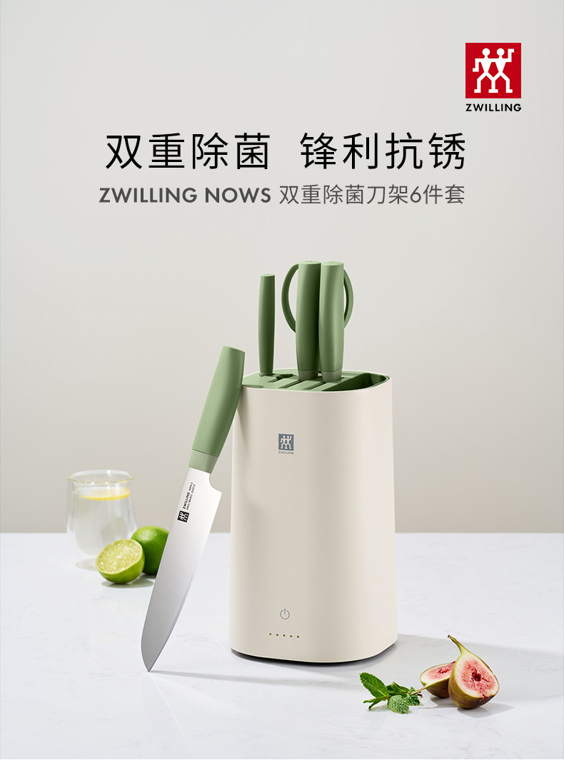 【双立人除菌刀架6件套绿色】德国双立人除菌刀架6件套家用厨房菜刀紫外线不锈钢刀具套装绿色