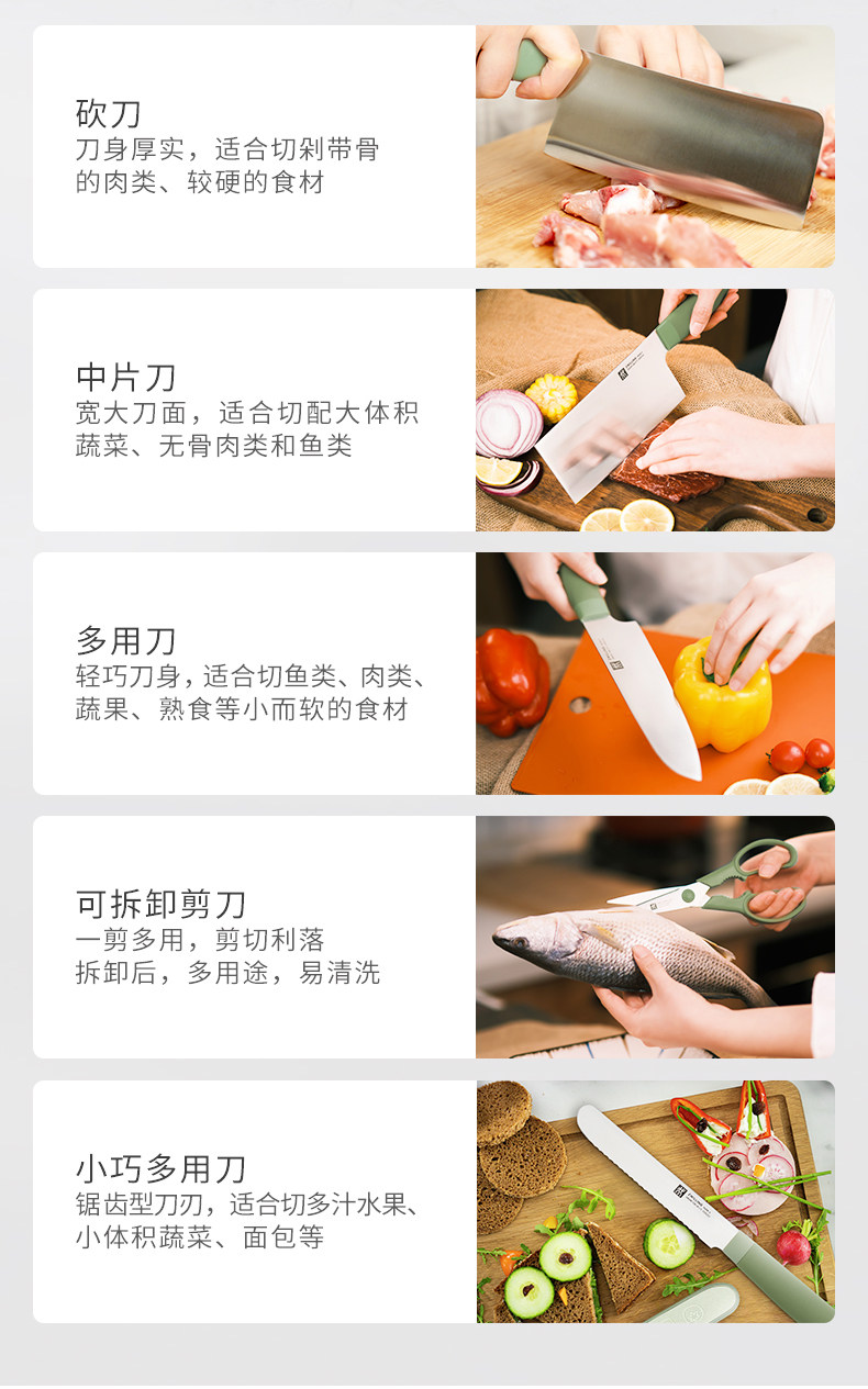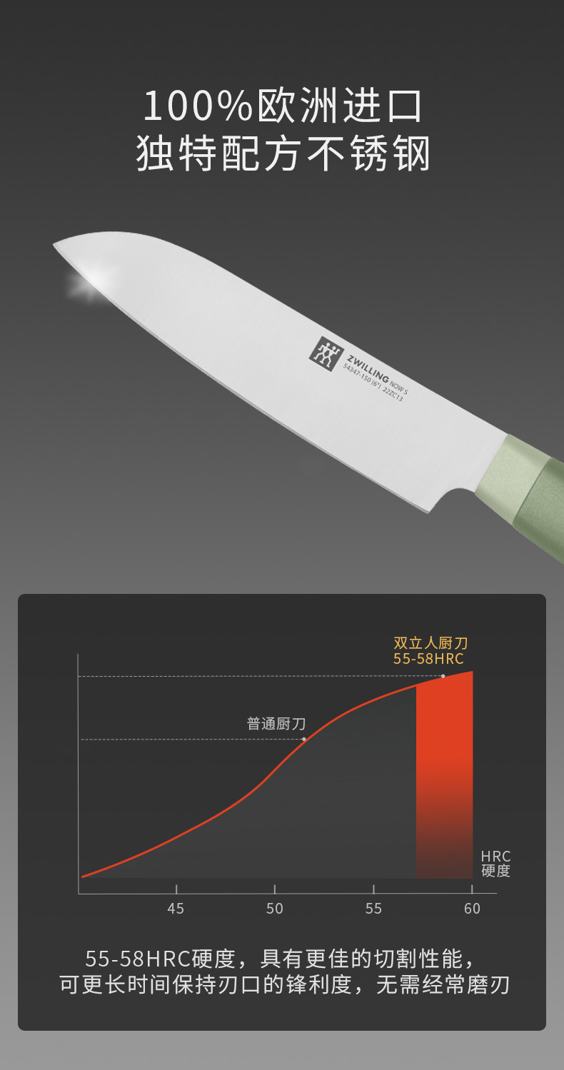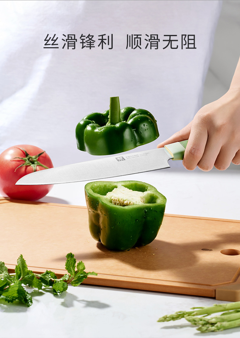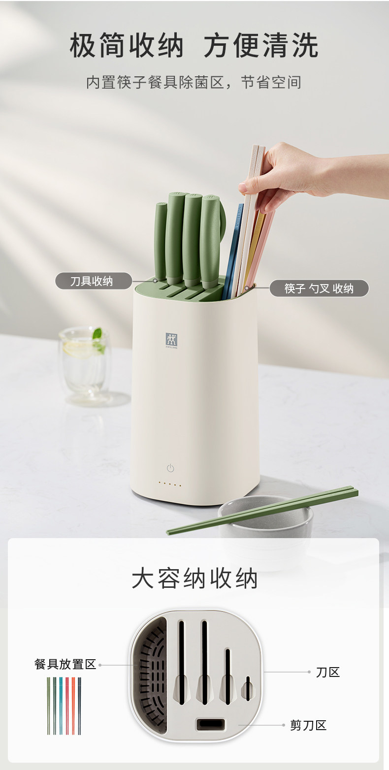 【双立人除菌刀架6件套绿色】德国双立人除菌刀架6件套家用厨房菜刀紫外线不锈钢刀具套装绿色