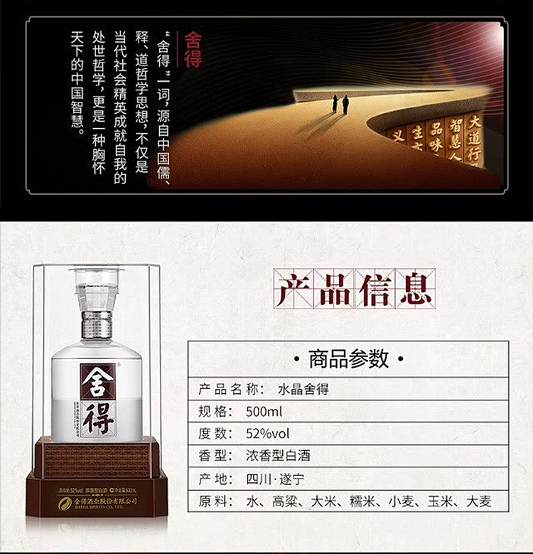 舍得酒水晶舍得52度500ml*1瓶浓香型白酒