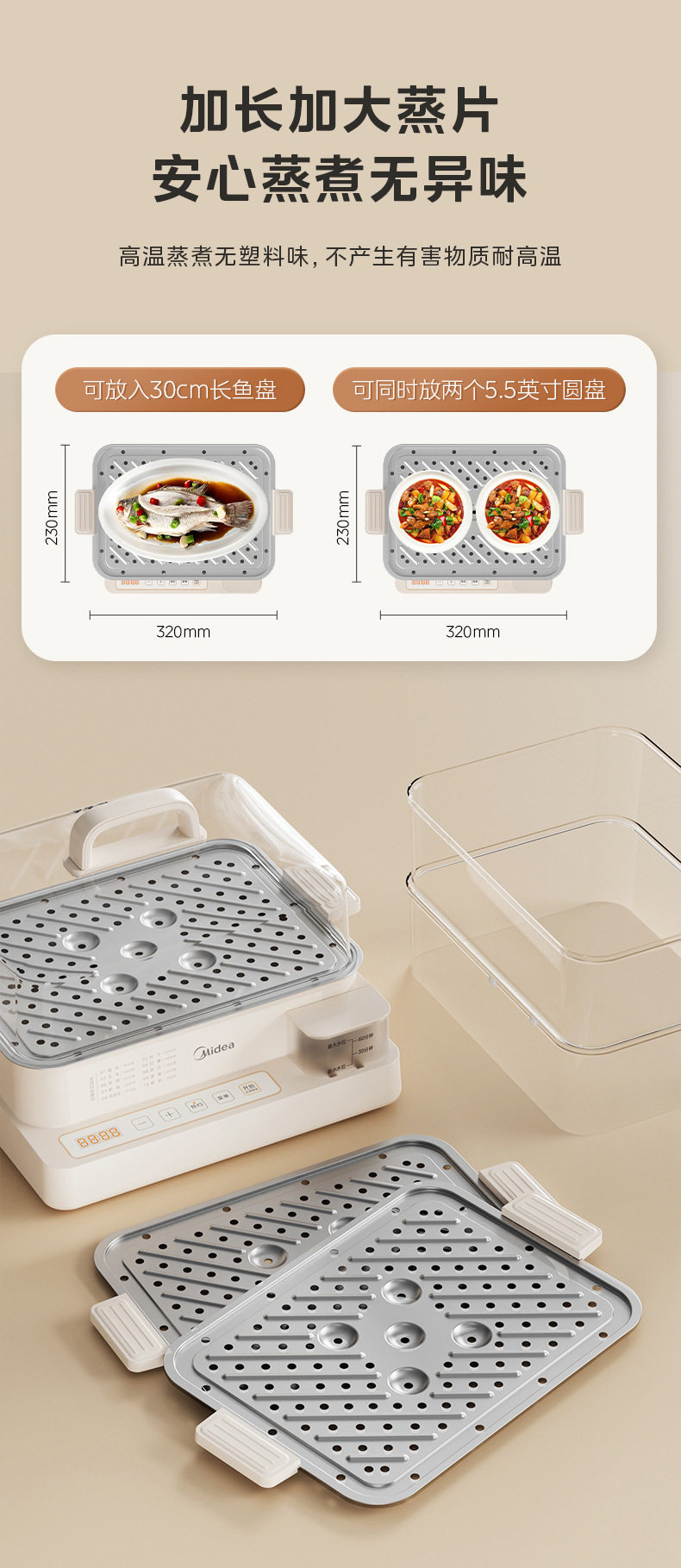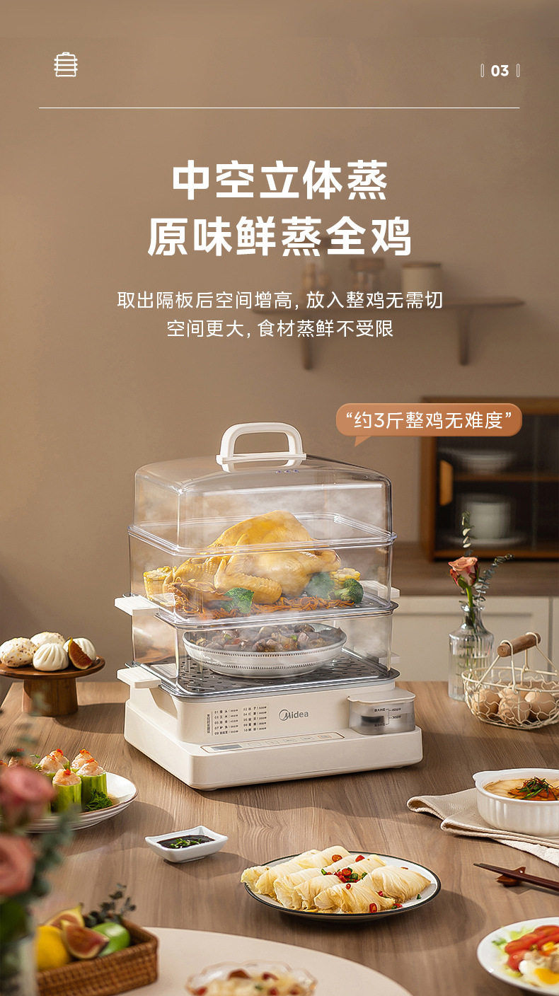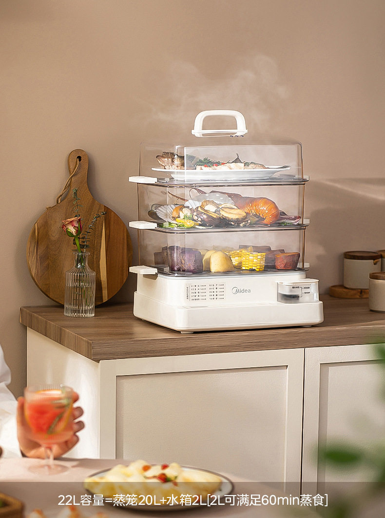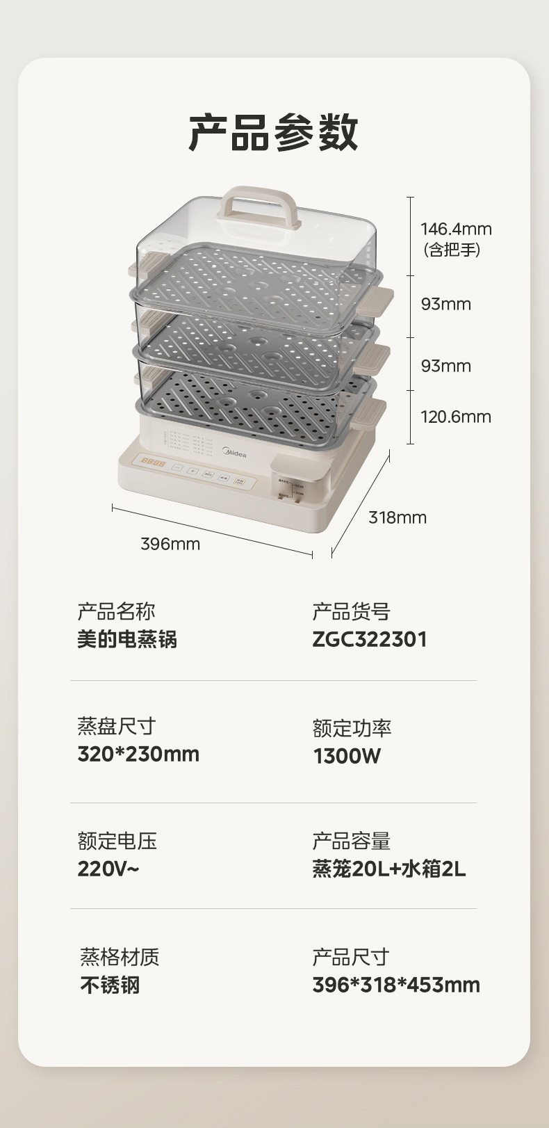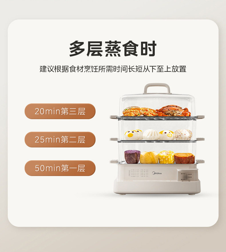 Midea/美的MZ-ZGC322301电蒸锅家用三层蒸炖一体蒸笼蒸煮蒸箱