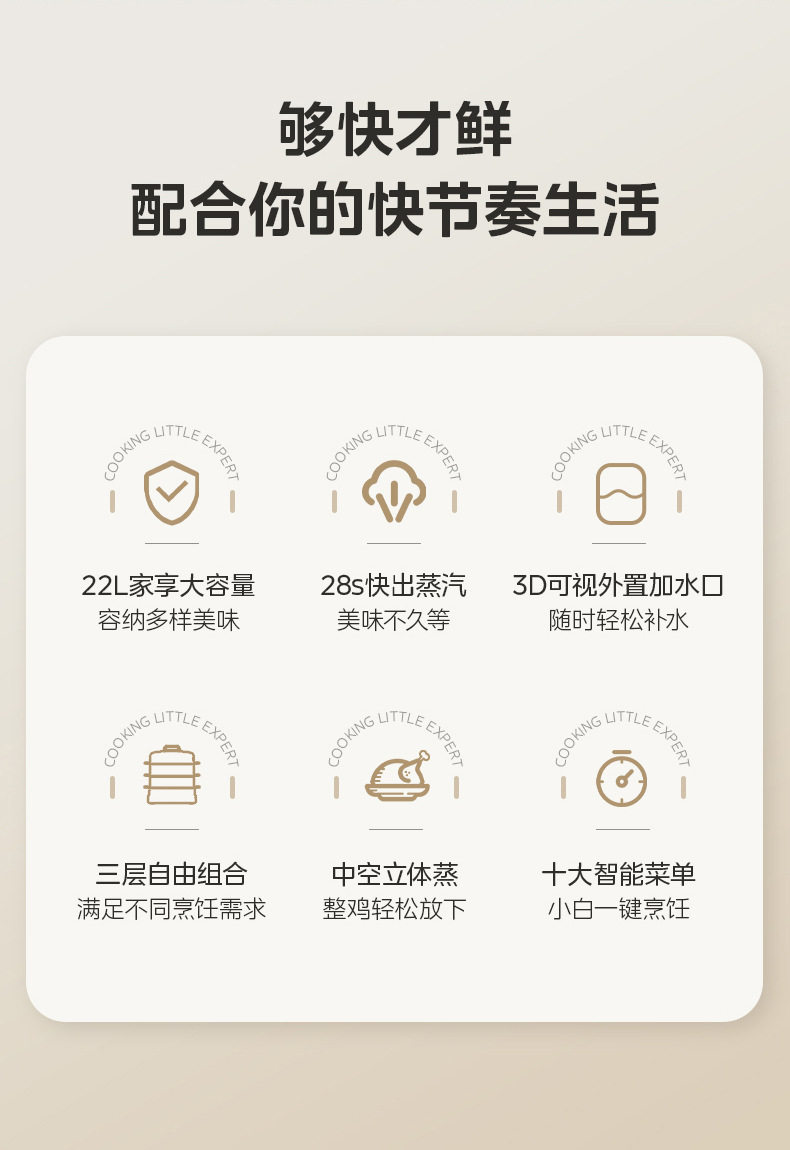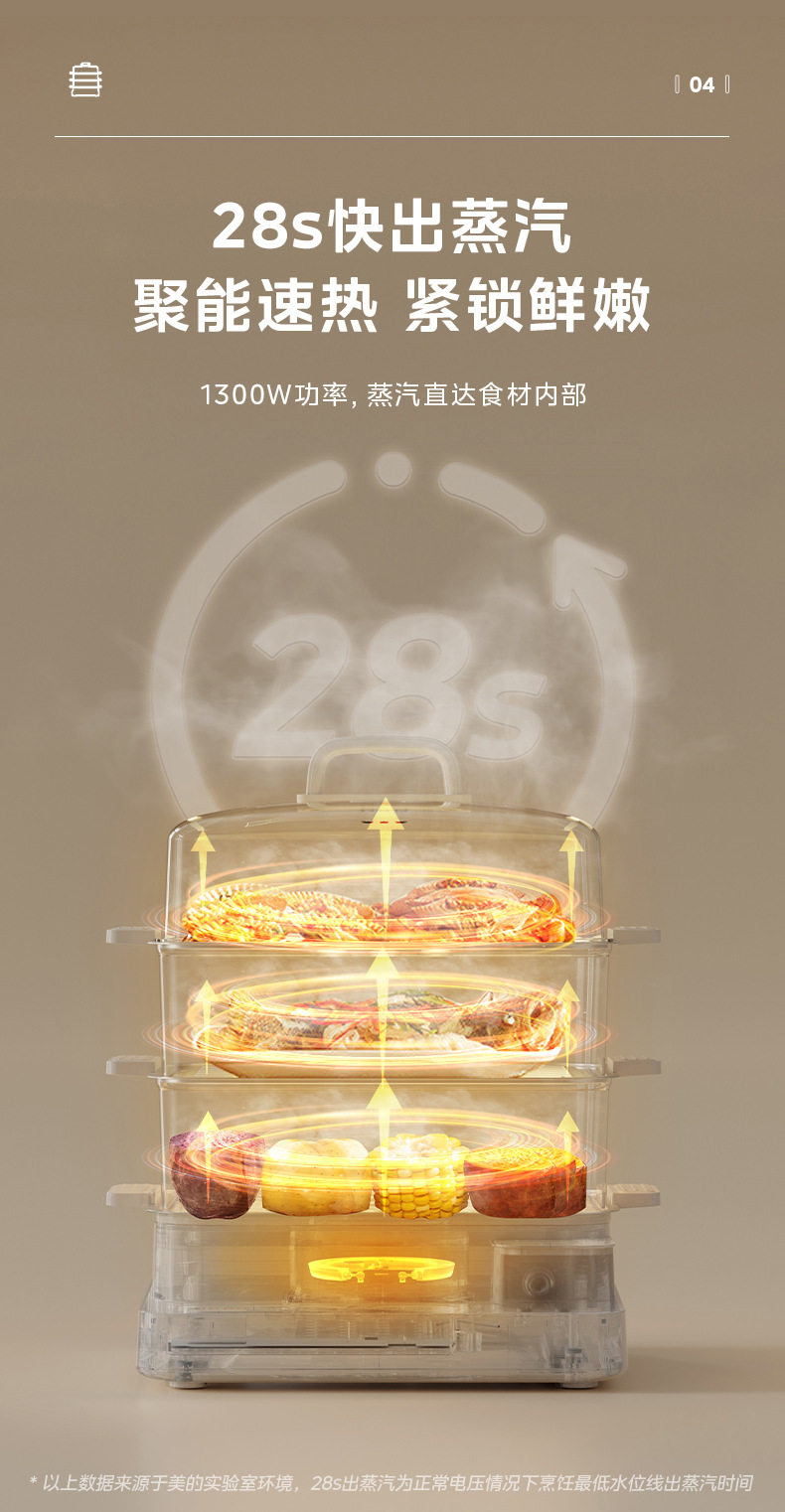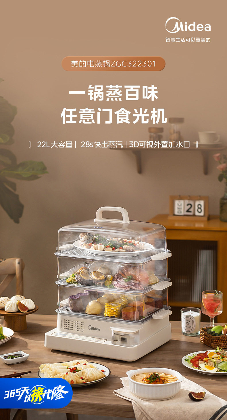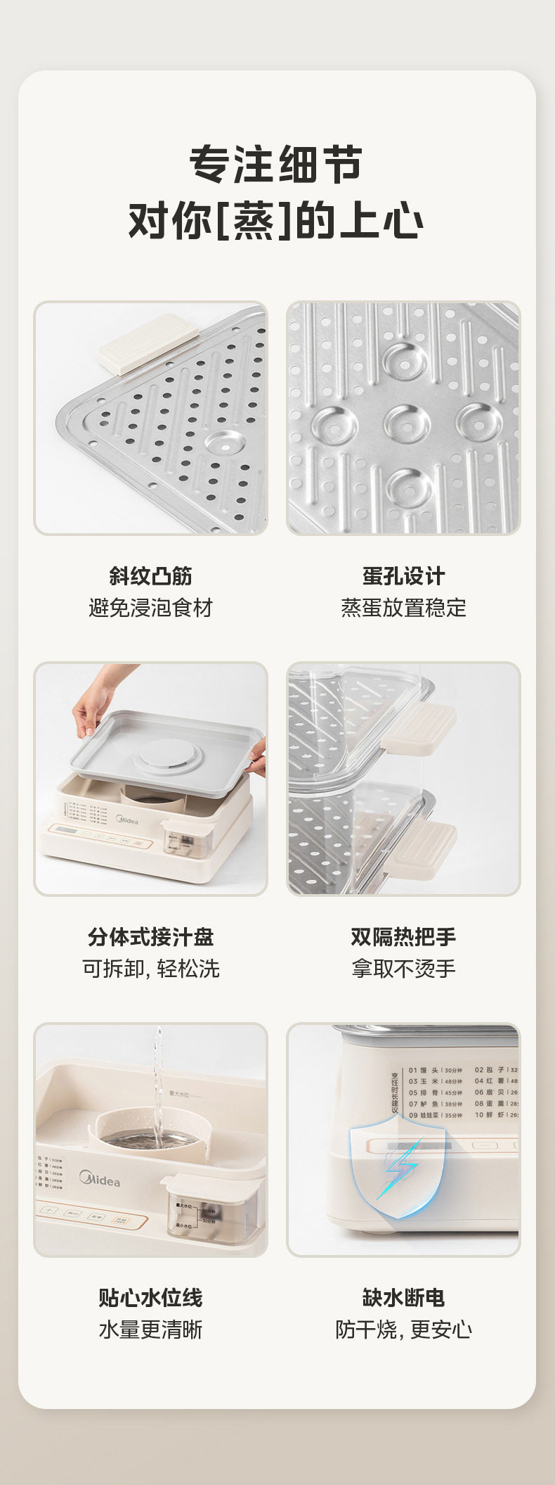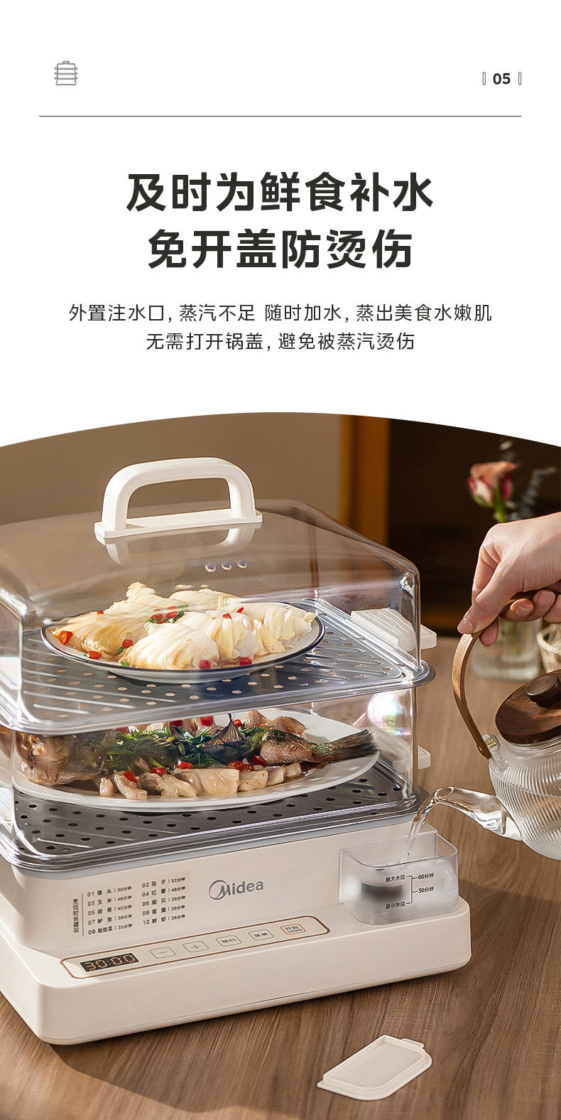 Midea/美的MZ-ZGC322301电蒸锅家用三层蒸炖一体蒸笼蒸煮蒸箱