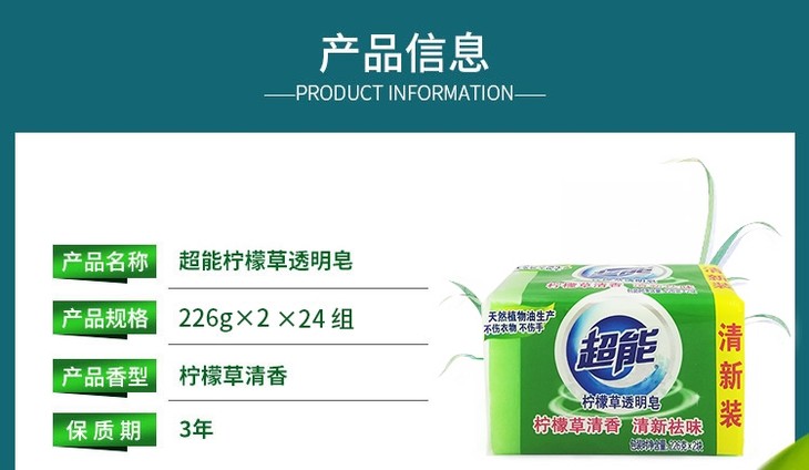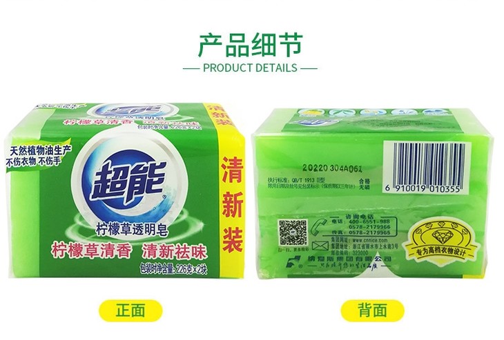 超能226*2两连块柠檬草透明皂226g*2