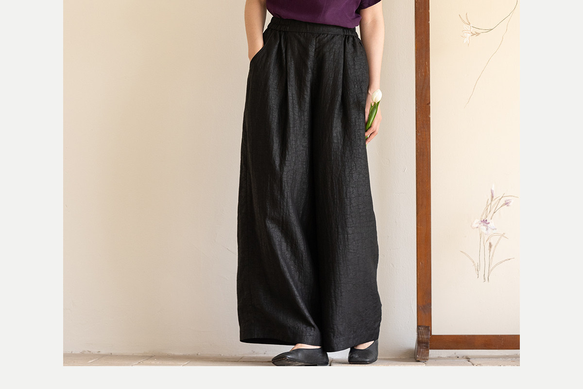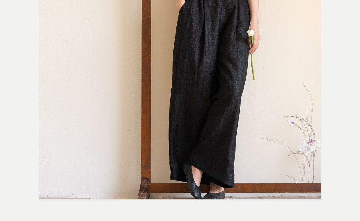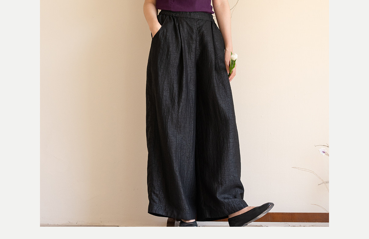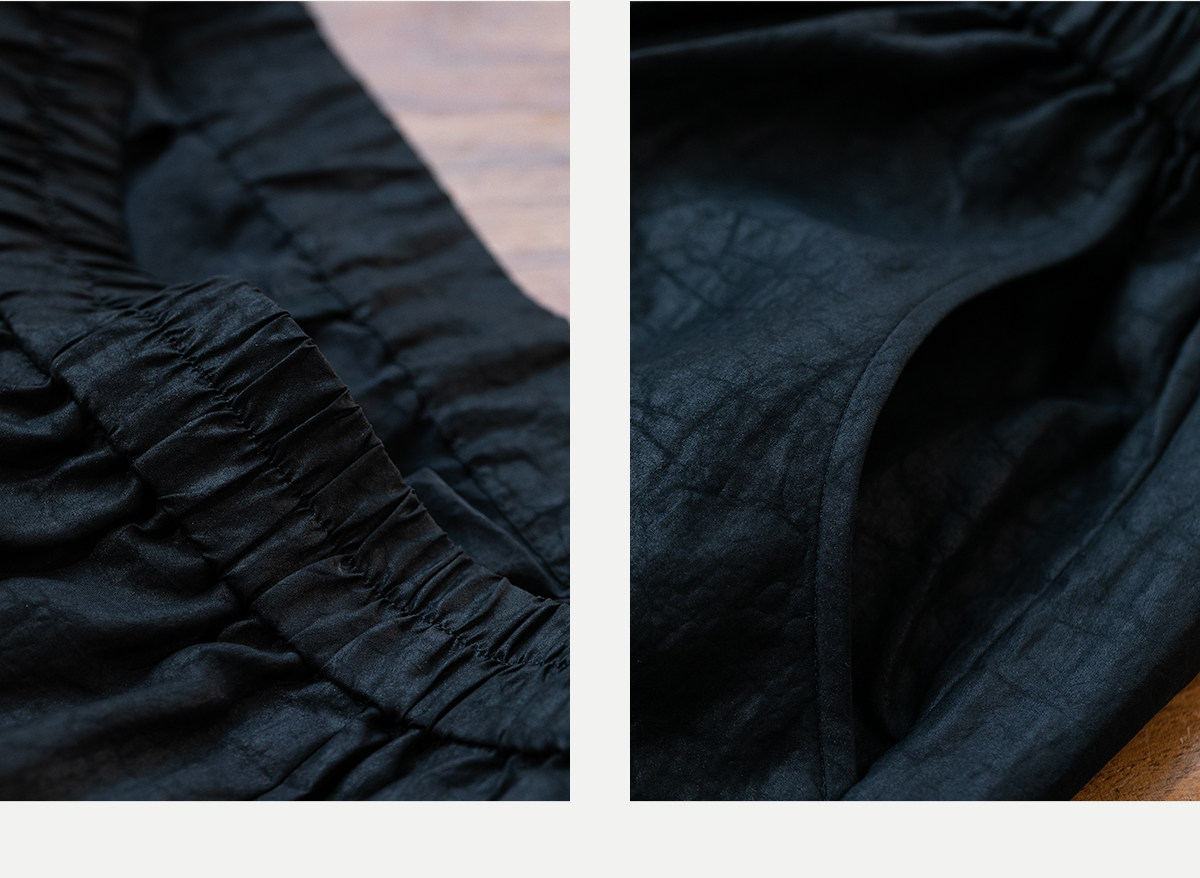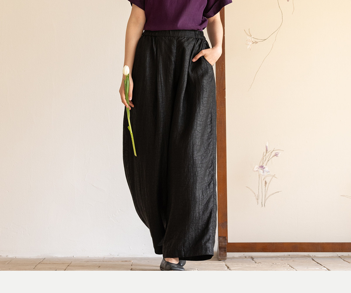 牧衣游原创 龟纹香云纱休闲长裤女新款黑色宽松禅意百搭裤子 欣雨