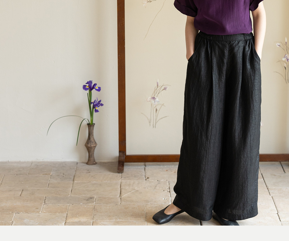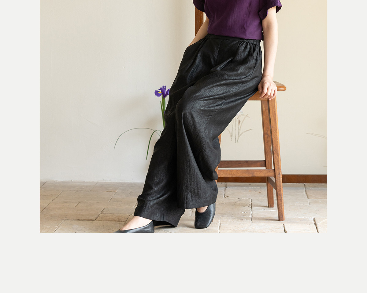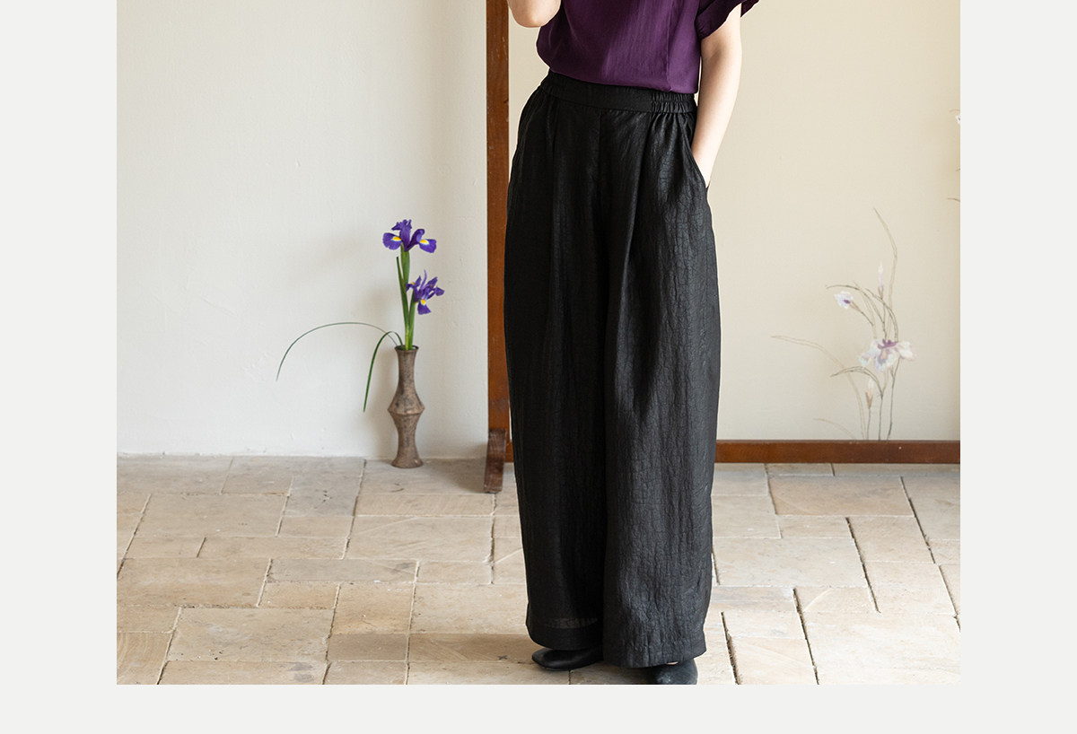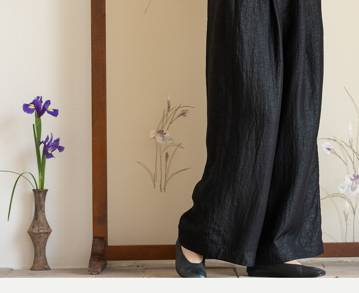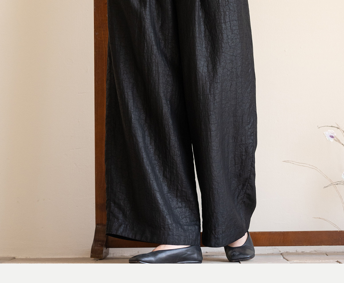 牧衣游原创 龟纹香云纱休闲长裤女新款黑色宽松禅意百搭裤子 欣雨