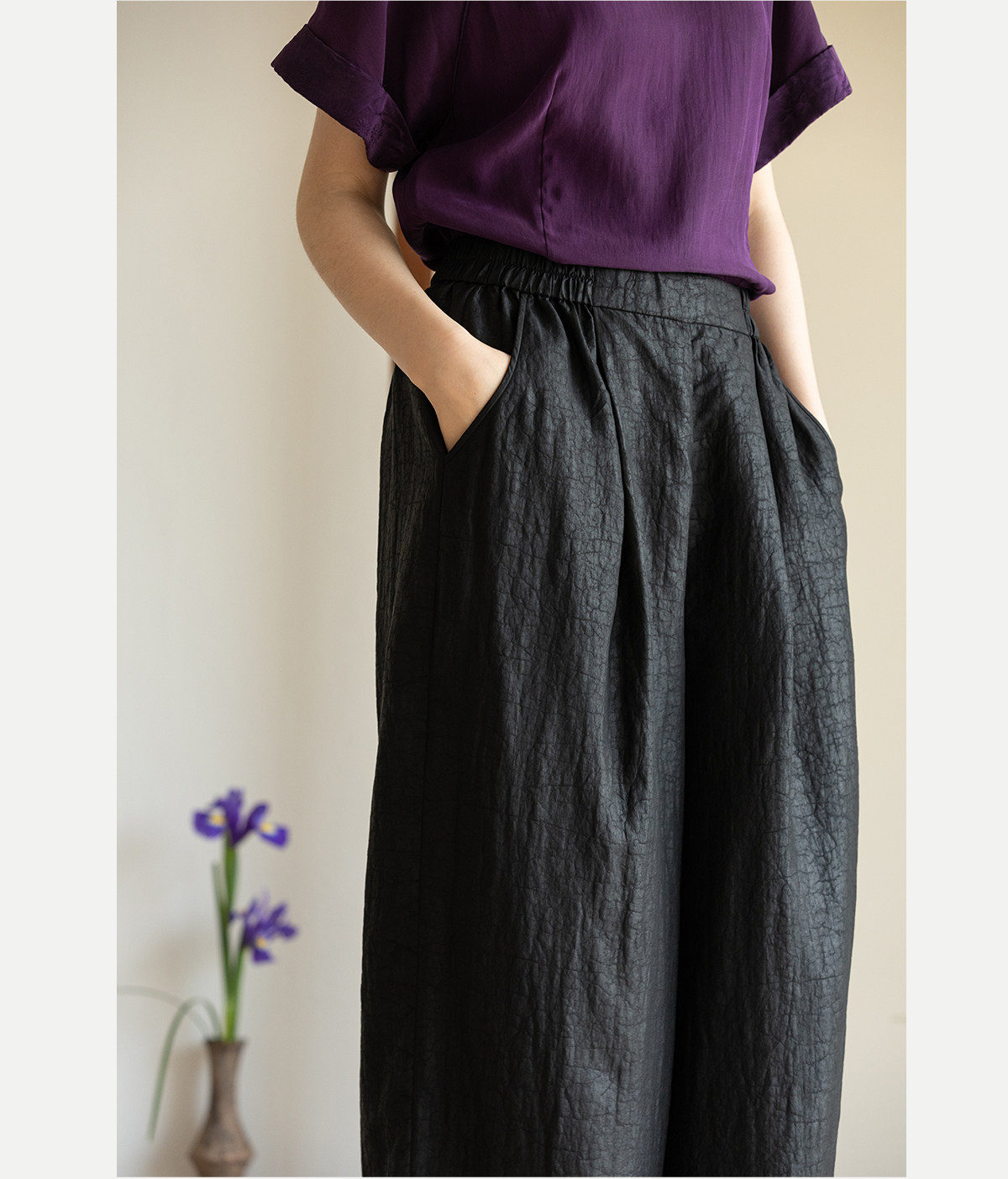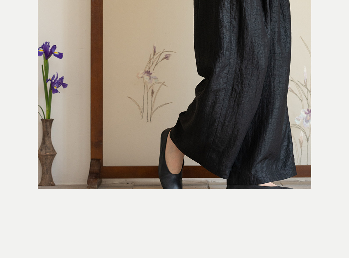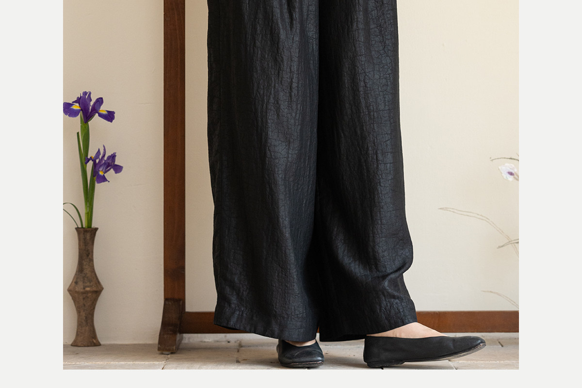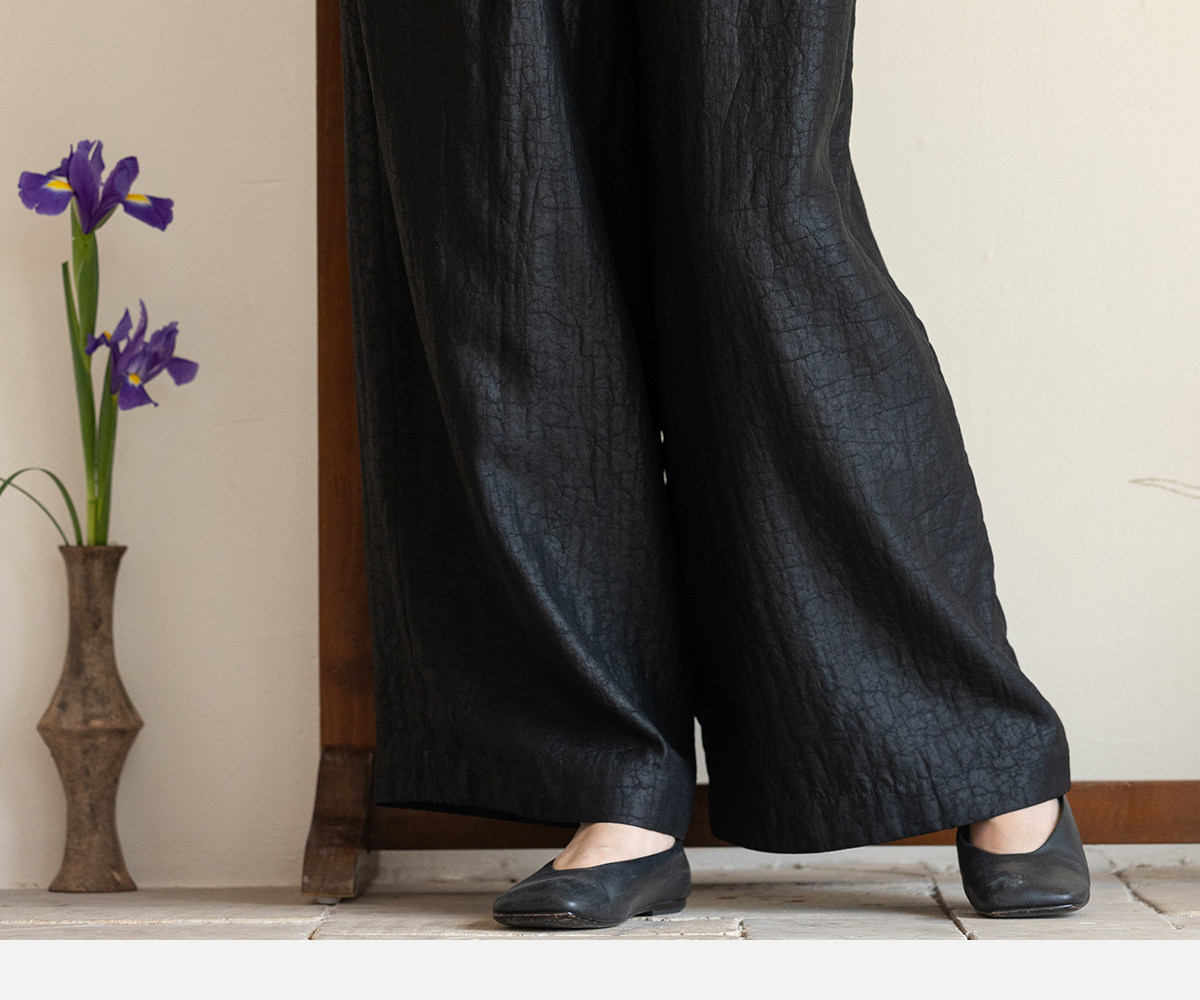牧衣游原创 龟纹香云纱休闲长裤女新款黑色宽松禅意百搭裤子 欣雨