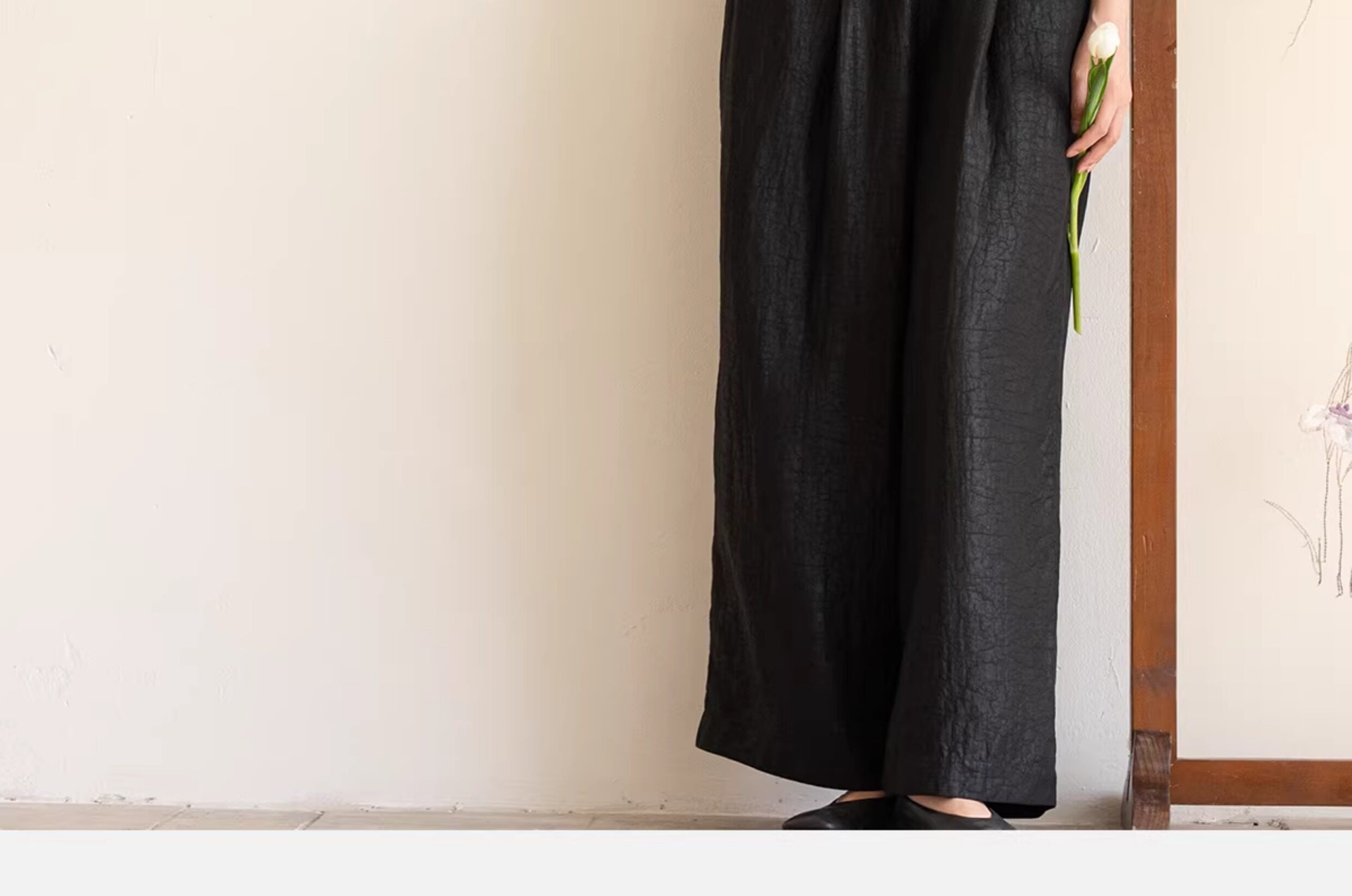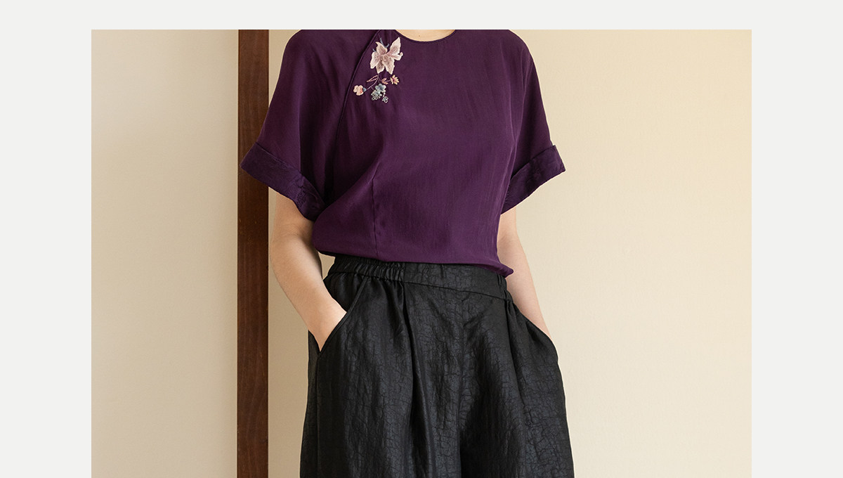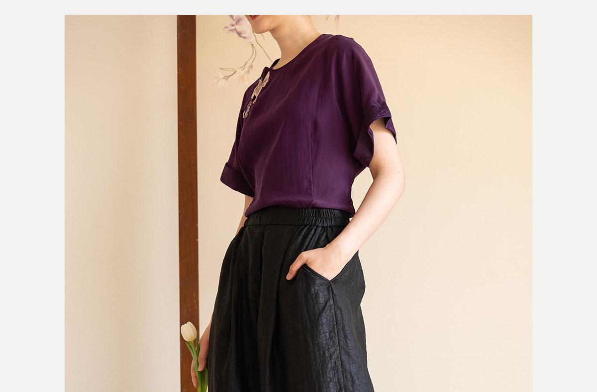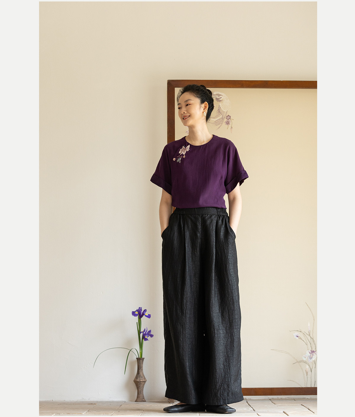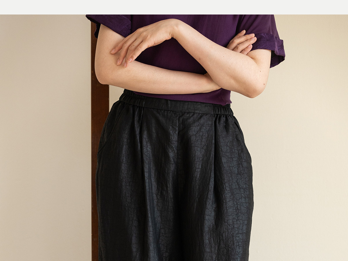 牧衣游原创 龟纹香云纱休闲长裤女新款黑色宽松禅意百搭裤子 欣雨