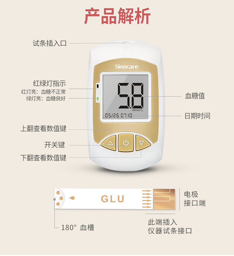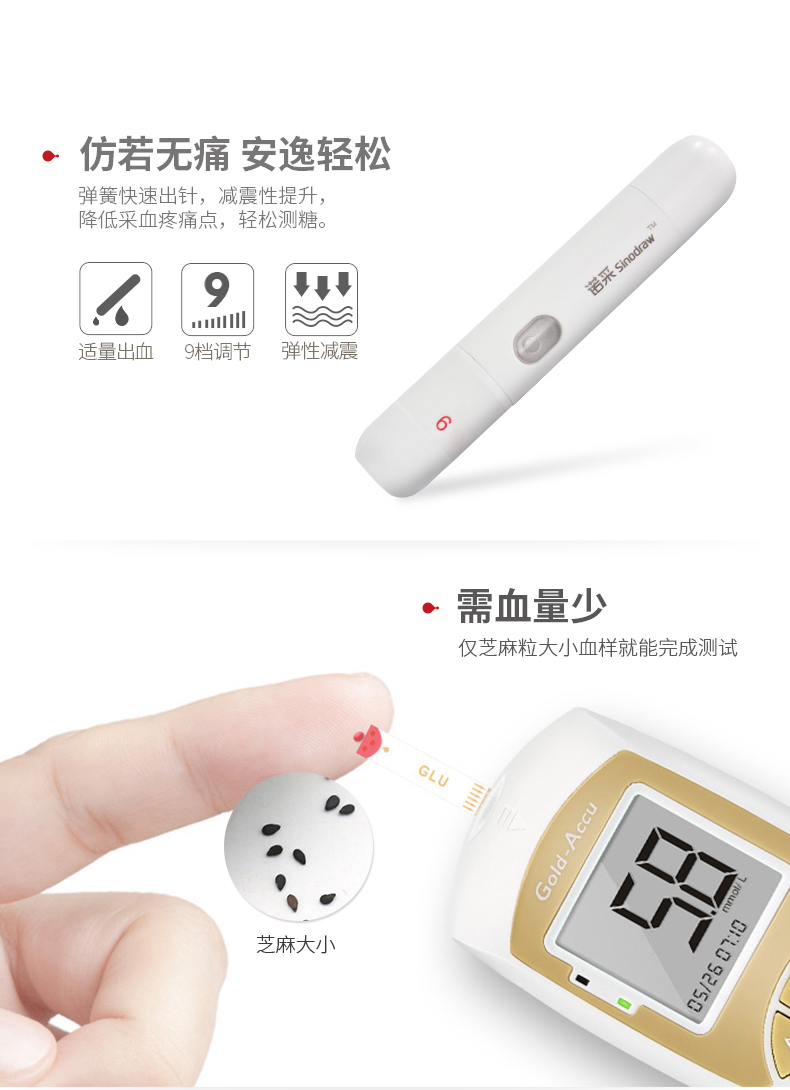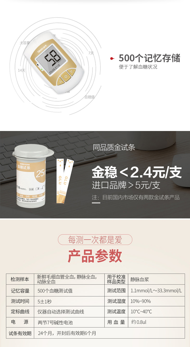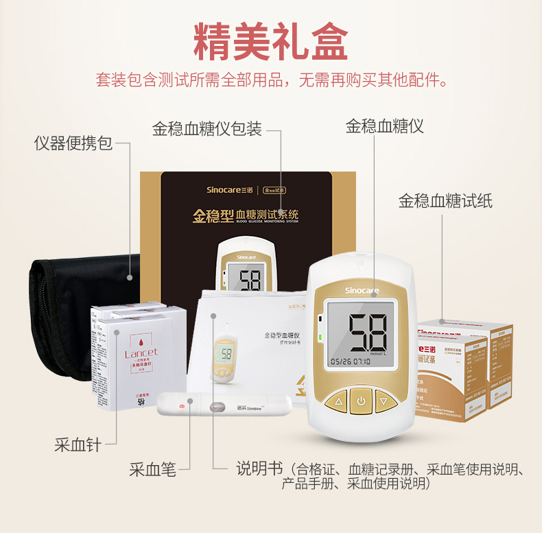 三诺金稳血糖仪+50片血糖试纸+50采血针