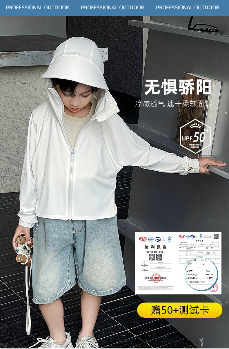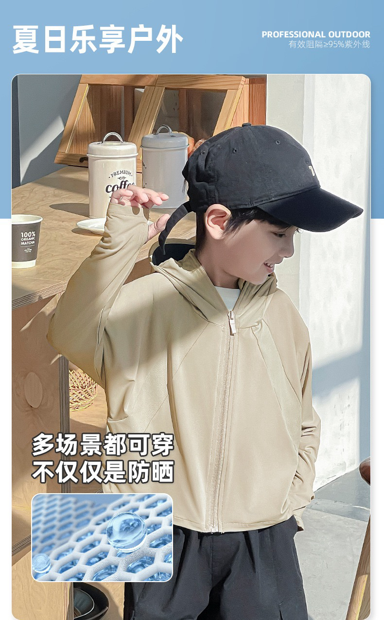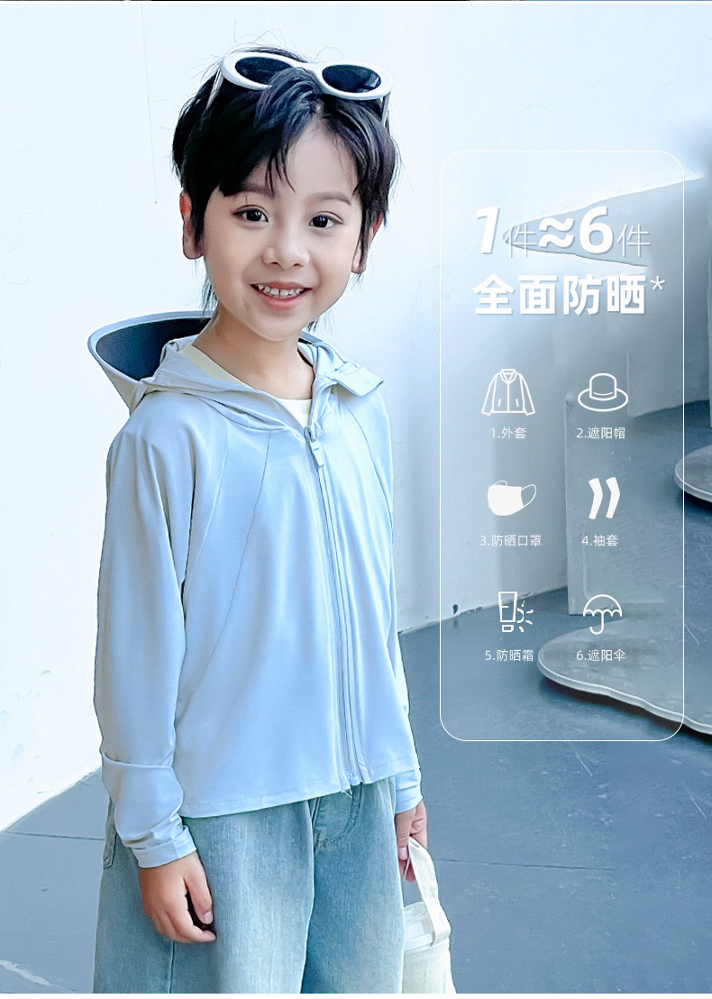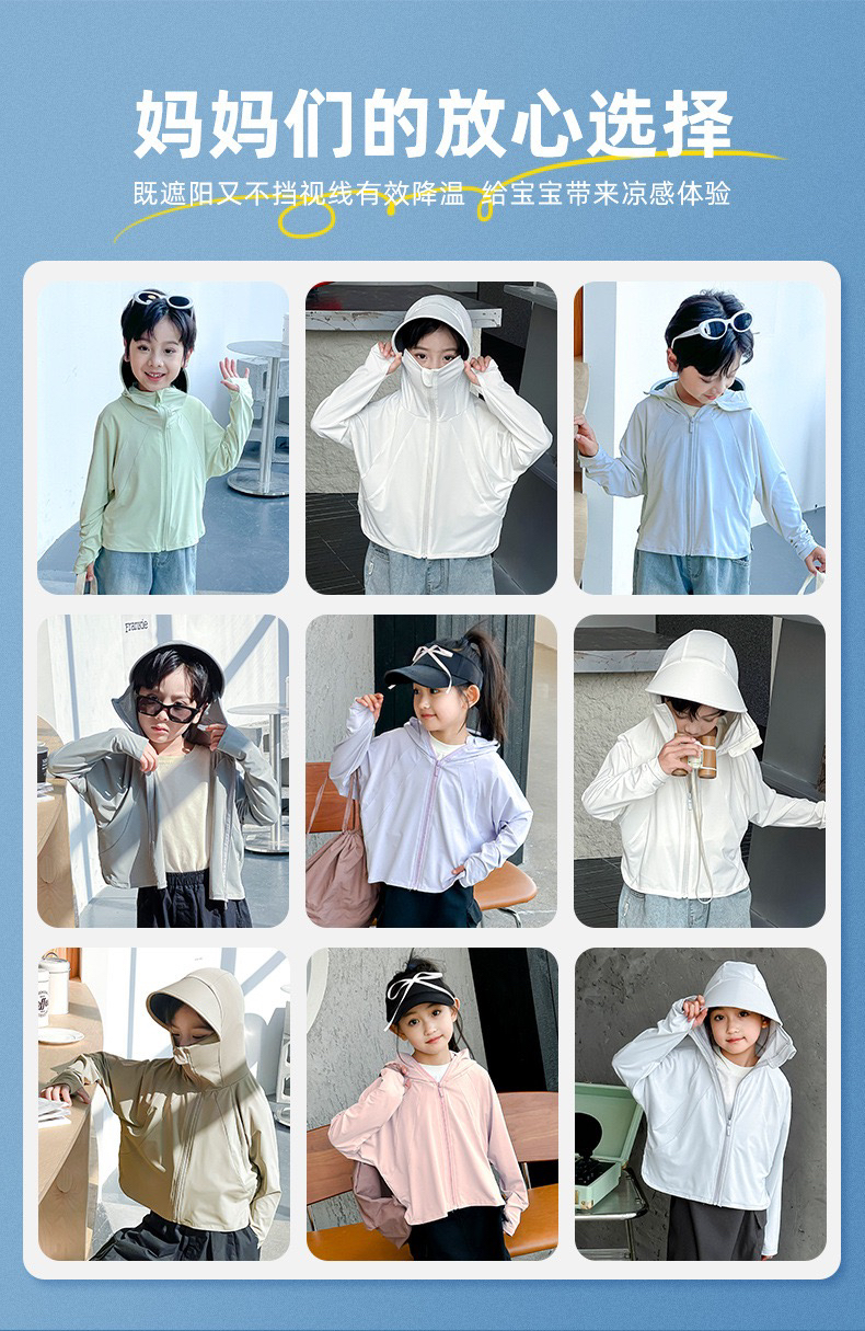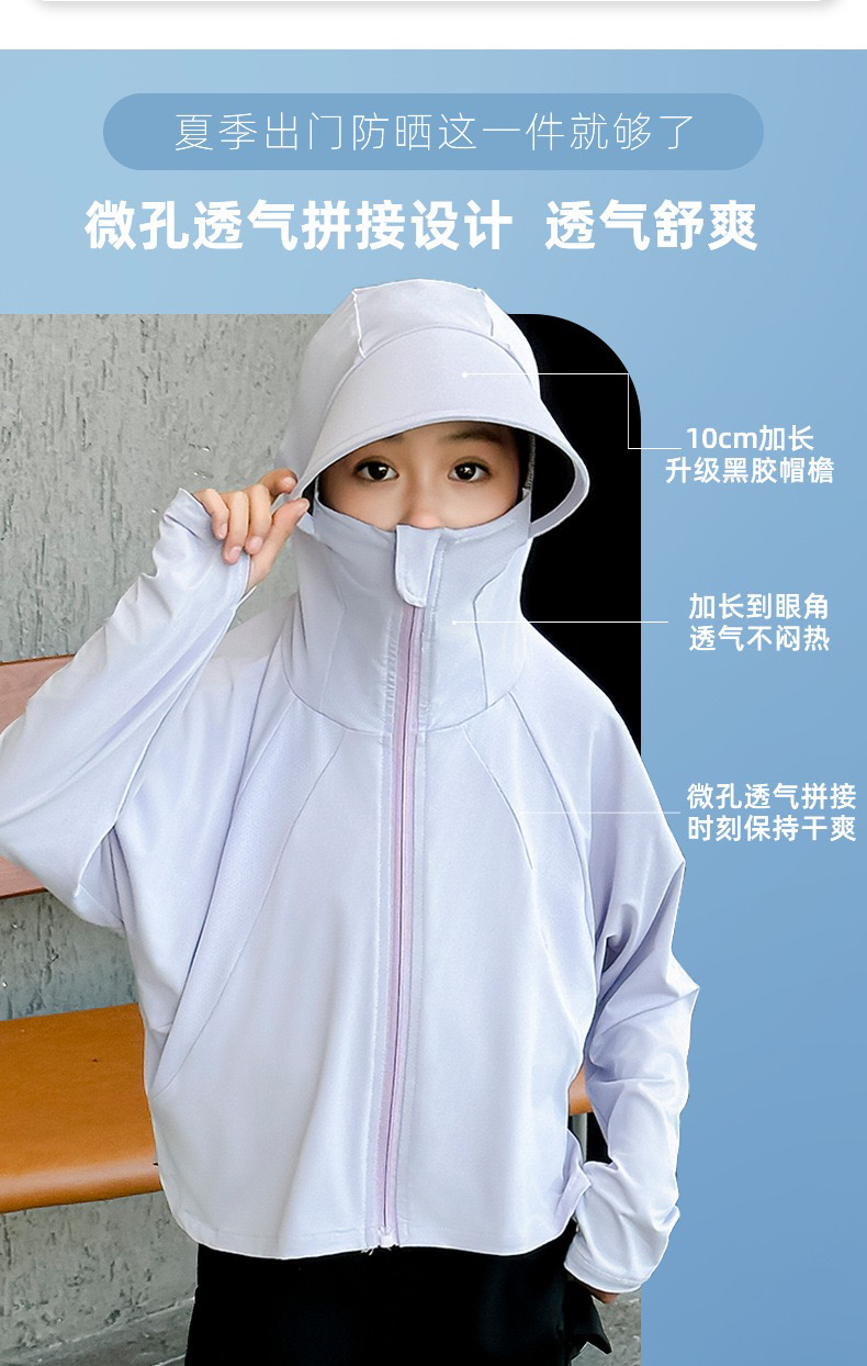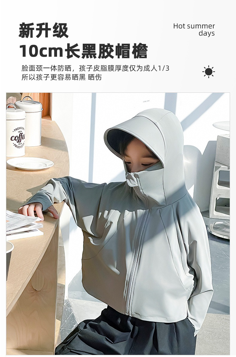 儿童防晒衣新款黑胶帽檐夏季防紫外线upf50+冰丝原纱男女童防晒服
